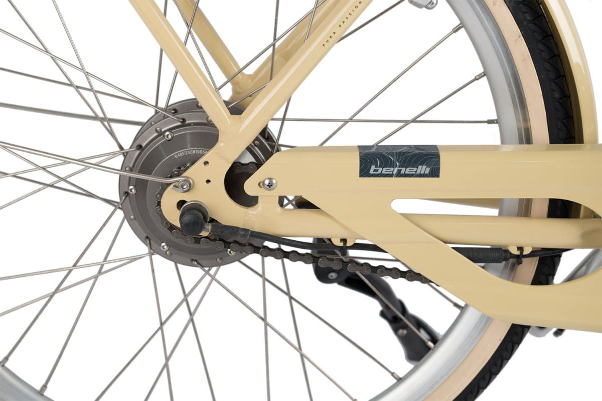 Benelli City Classica 26 — это элегантный электровелосипед, созданный для комфортной городской езды с акцентом на надёжность и простоту эксплуатации. Оснащённый задним двигателем мощностью 350 Вт, он развивает скорость до 25 км/ч и обеспечивает запас хода до 40 км благодаря аккумулятору Li-ion 48 В / 7800 мА·ч. Максимальная нагрузка достигает 150 кг, что делает его подходящим для перевозки лёгкого багажа или поездок с пассажиром. Бренд Benelli, известный своим итальянским дизайном, сочетает классические формы с современными технологиями, подчеркивая статус владельца.