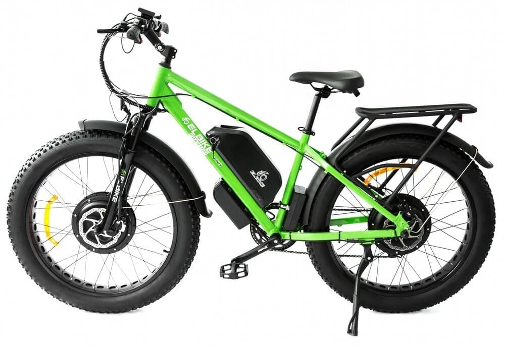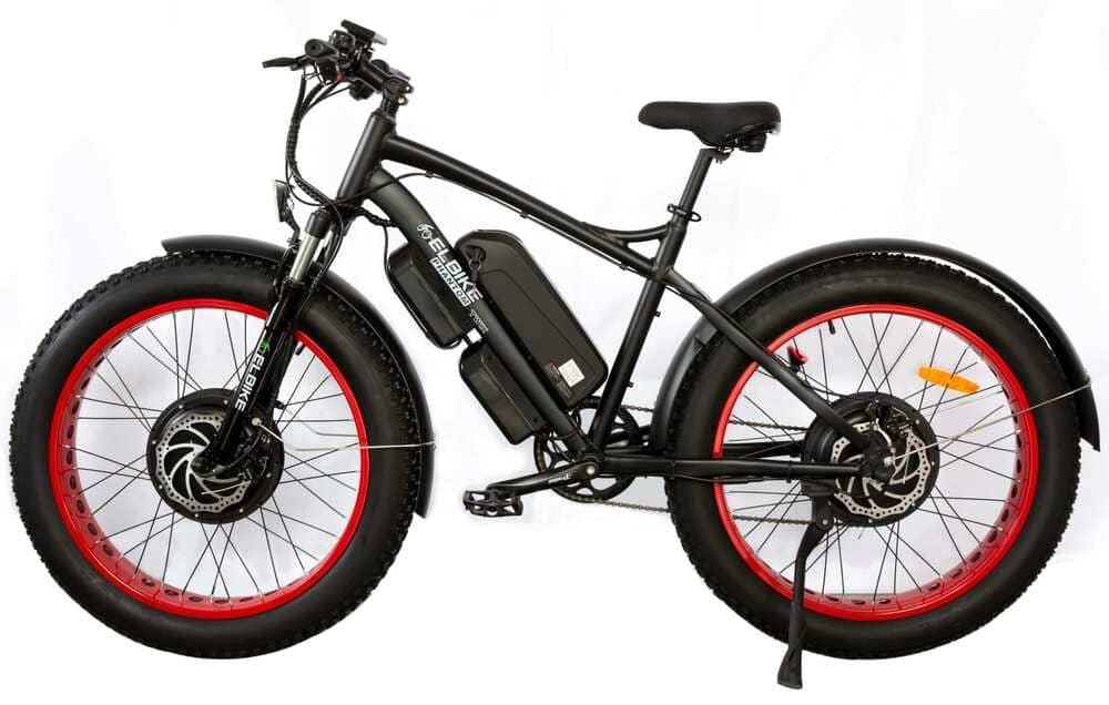 Электровелосипед Phantom Twix от фирмы Elbike - это мощный внедорожный байк с 26-дюймовыми надувными колесами и регулируемой вилкой. Этот велосипед разработан для активных поездок в экстремальных условиях и оборудован двумя мощными безредукторными моторами прямого привода Direct Drive мощностью 500 ватт от MXUS. Это позволяет велосипеду легче справляться с большими нагрузками и частично восстанавливать энергию при помощи рекуперации. Его 16-амперчасовая аккумуляторная батарея обеспечивает дистанцию до 70 км (при использовании педалей).
