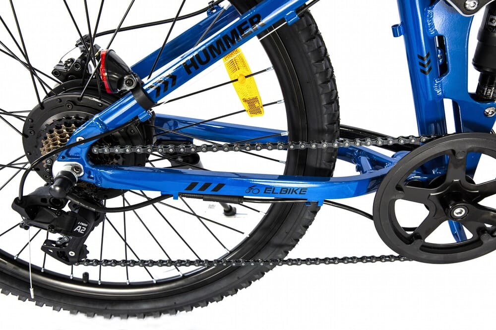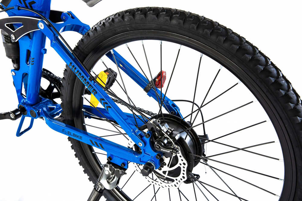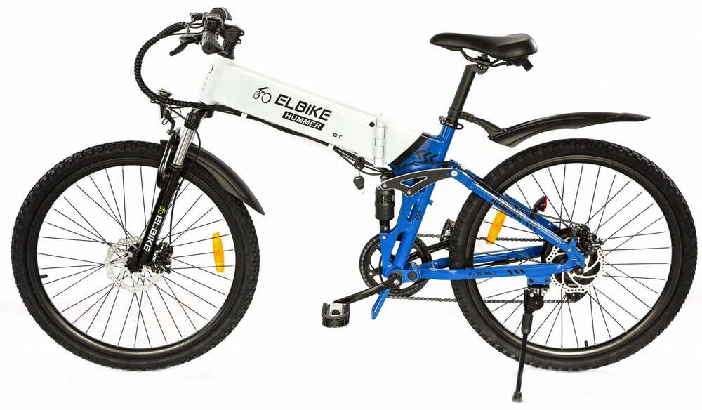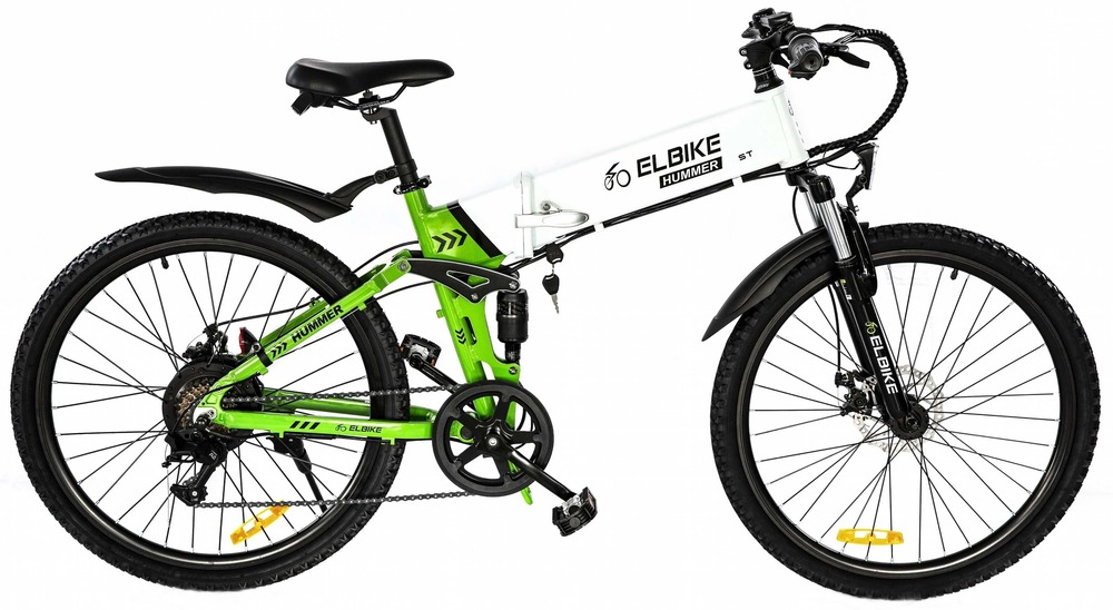 Электровелосипед ELBIKE HUMMER ST- это одна из доступных моделей в серии с напряжением 36 вольт. Этот электровелосипед оснащен редукторным мотором MXUS мощностью 350 ватт и литий-ионным аккумулятором 36 вольт 10 ампер-часов, что позволяет достигать скорости до 32 километров в час и проезжать расстояния от 35 до 40 километров без использования педалей, только с помощью ручки газа, и до 60-70 километров при педалировании.