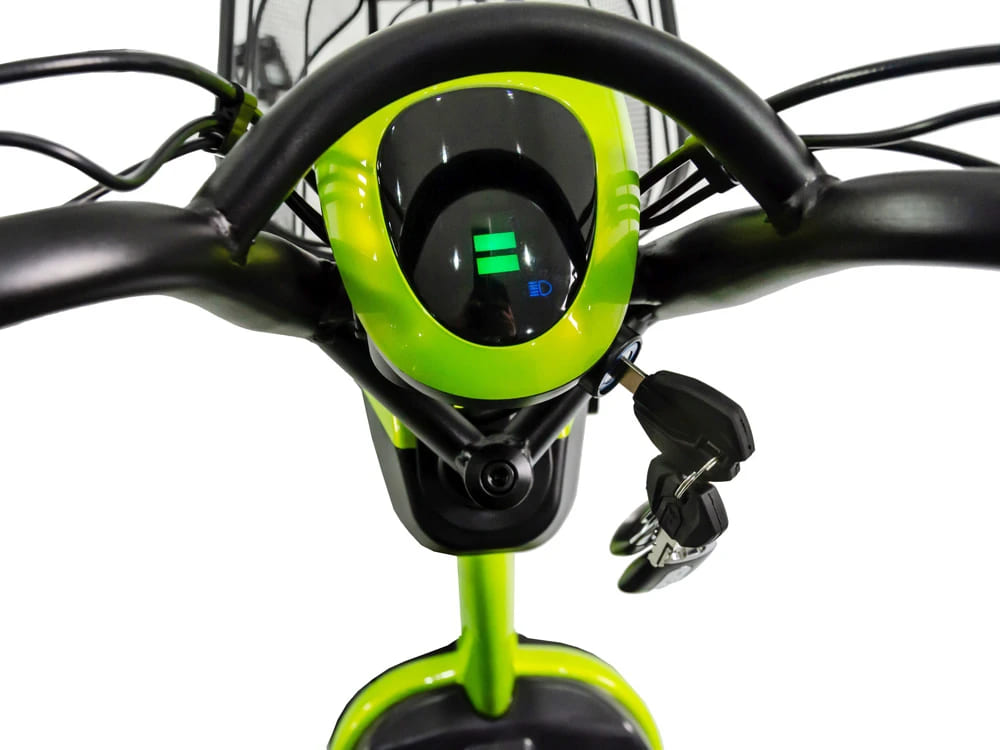 Электровелосипед ELBIKE DACHA 12A - это модель этой серии, оснащенная мощным безредукторным мотором MXUS 600 ватт и свинцовым аккумулятором емкостью 48 вольт 12 ампер-часов. Это позволяет разгоняться до 30-35 км/час и проезжать расстояния до 35 километров без использования педалей, управляясь только ручкой газа, или до 65 километров с использованием педалей.