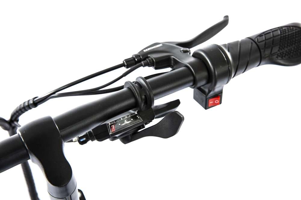 На руле электровелосипеда установлен жидкокристаллический LCD монитор, который отображает информацию о скорости, пробеге и уровне заряда. С его помощью вы можете переключать режимы мощности и выбирать оптимальную скорость движения. Всего доступно 5 режимов, с ограничением скорости приблизительно 16/22/28/40/50 км/час для каждого из них. Эта функция используется с 2015 года и обеспечивает удобство для разных пользователей, независимо от пола и возраста. Кроме того, на руле установлена монетка для механического переключения скоростей, что позволяет легко переключаться в режим обычного велосипеда.