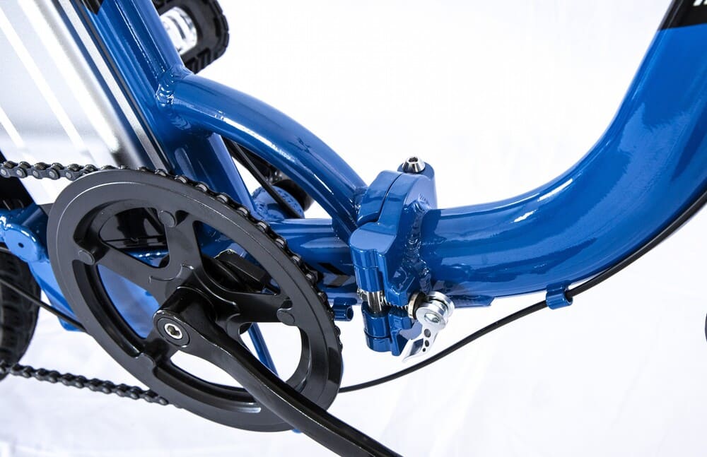 Он оснащен редукторным мотором MXUS мощностью 250 ватт и литий-ионной аккумуляторной батареей ёмкостью 36 вольт 8 ампер-часов. Это обеспечивает максимальную скорость в 30 км/час и дальность поездки до 30-35 километров без необходимости педалирования, просто используя ручку газа, и до 55-60 километров при активном педалировании.