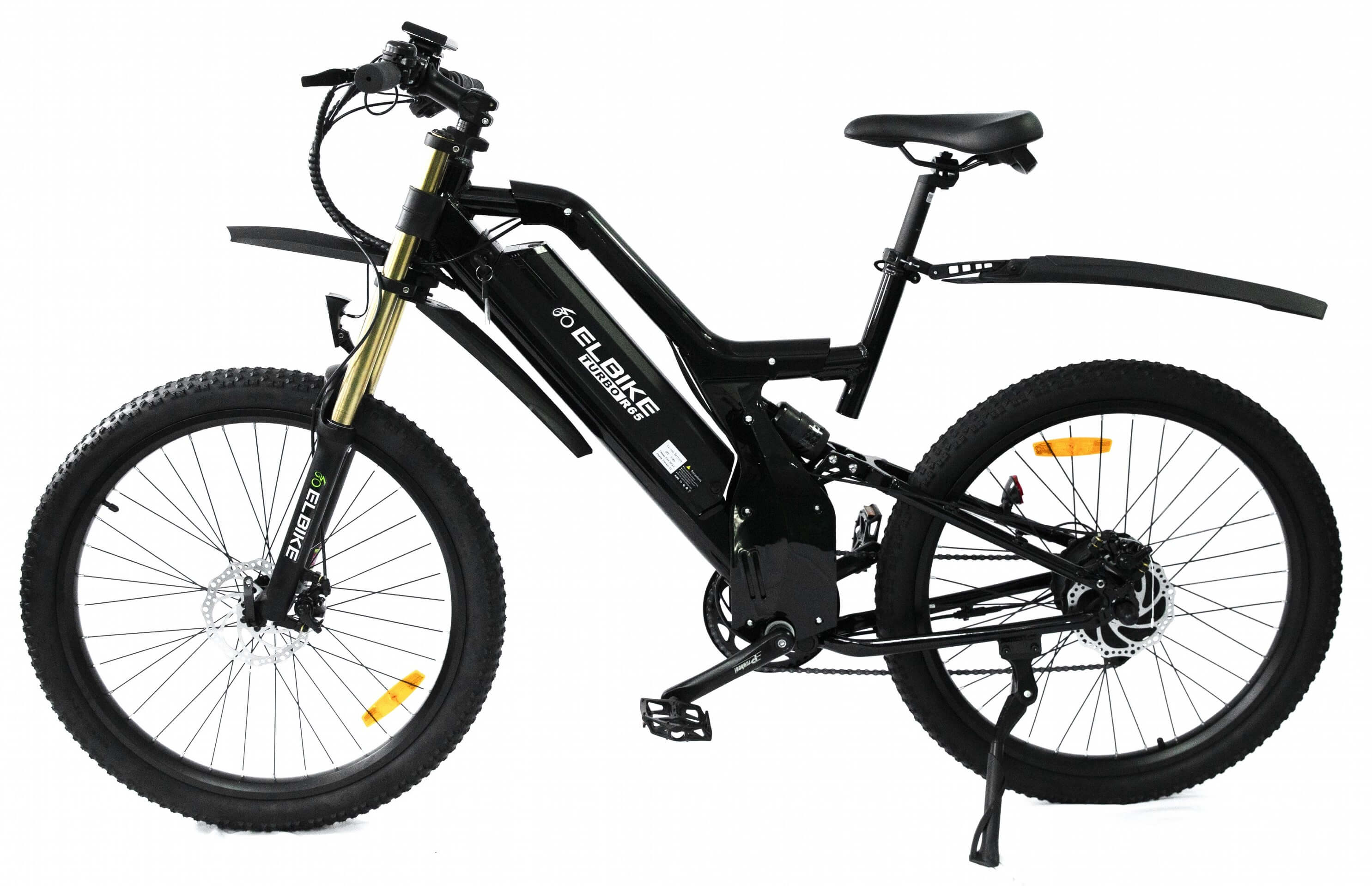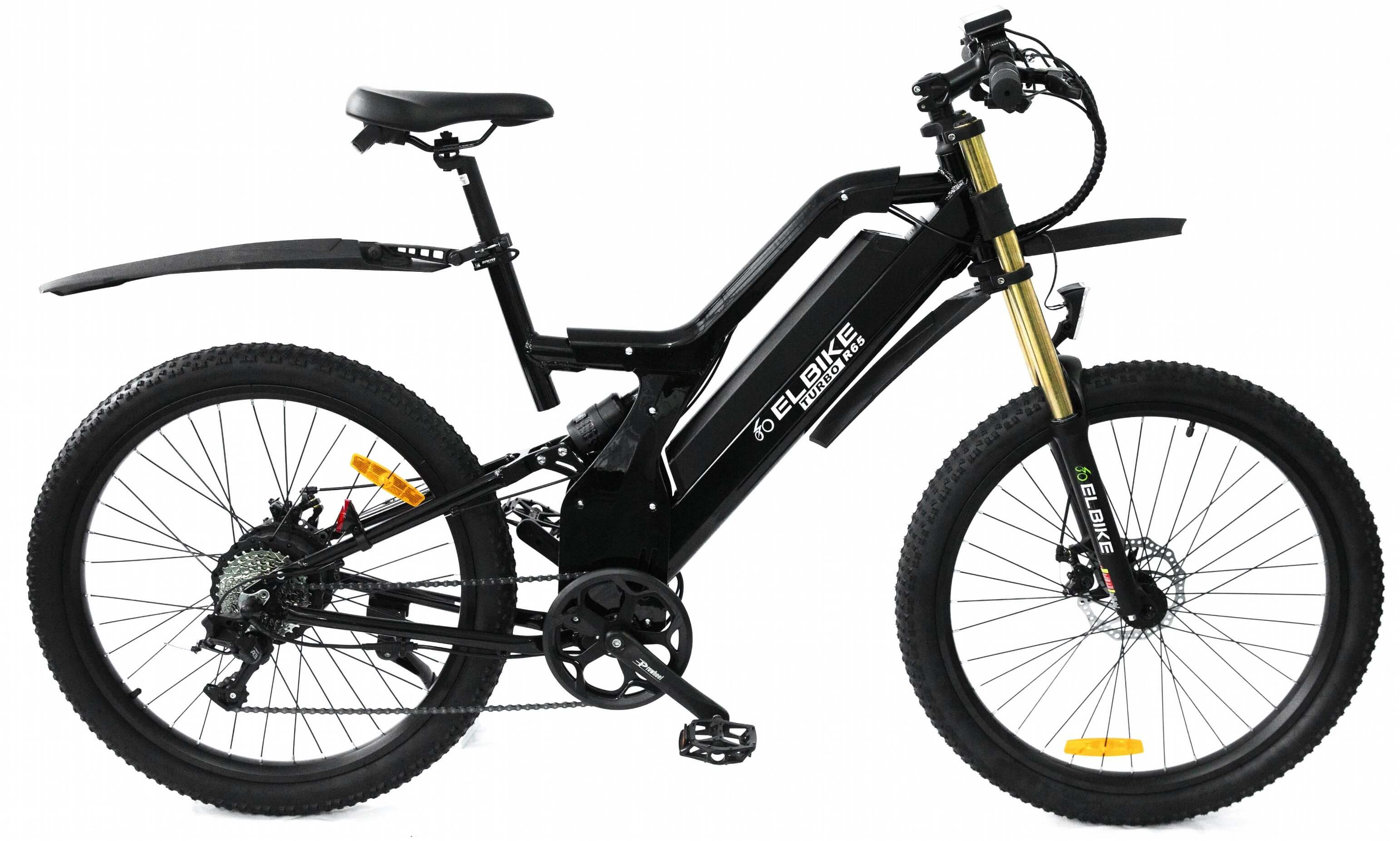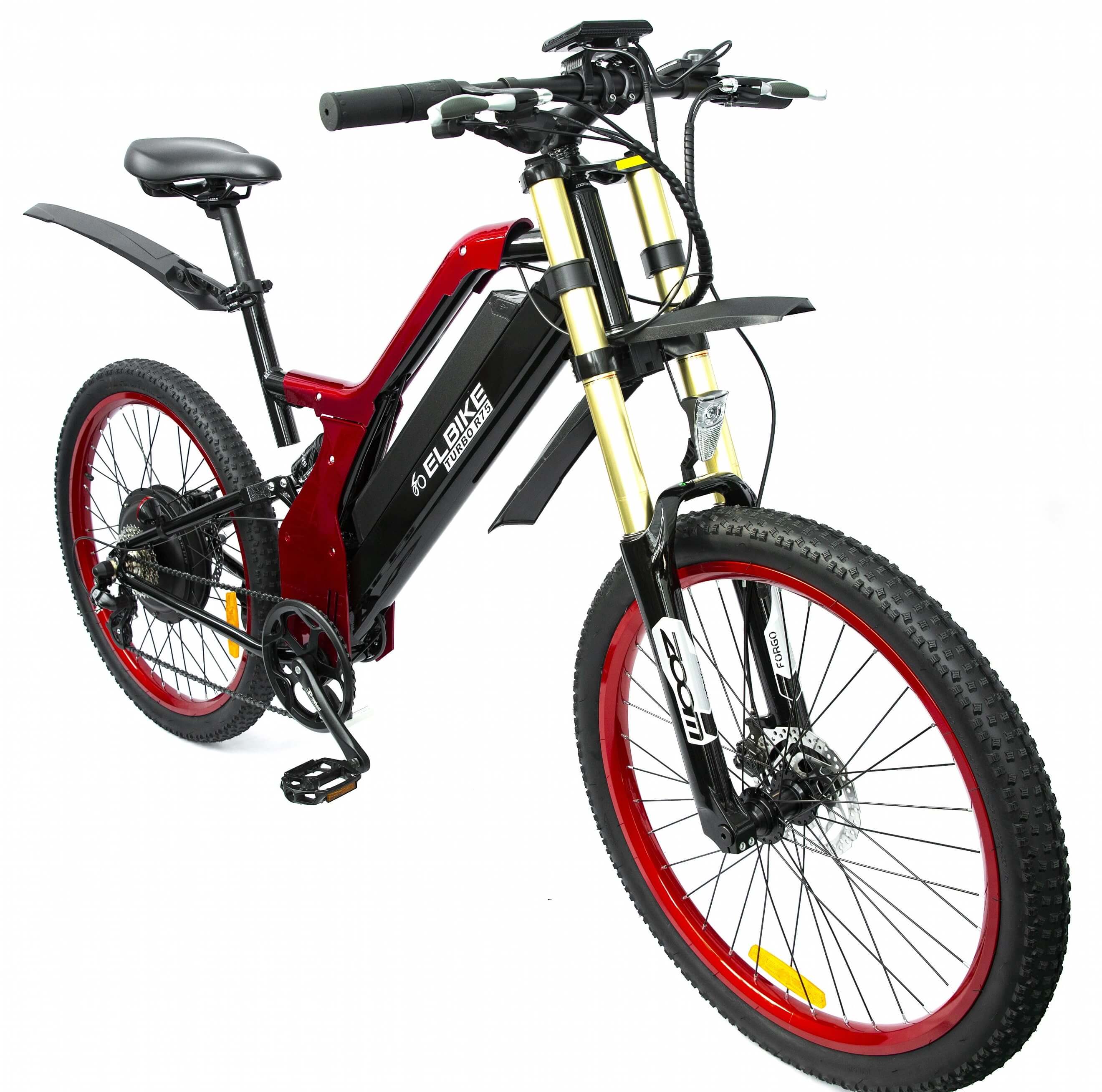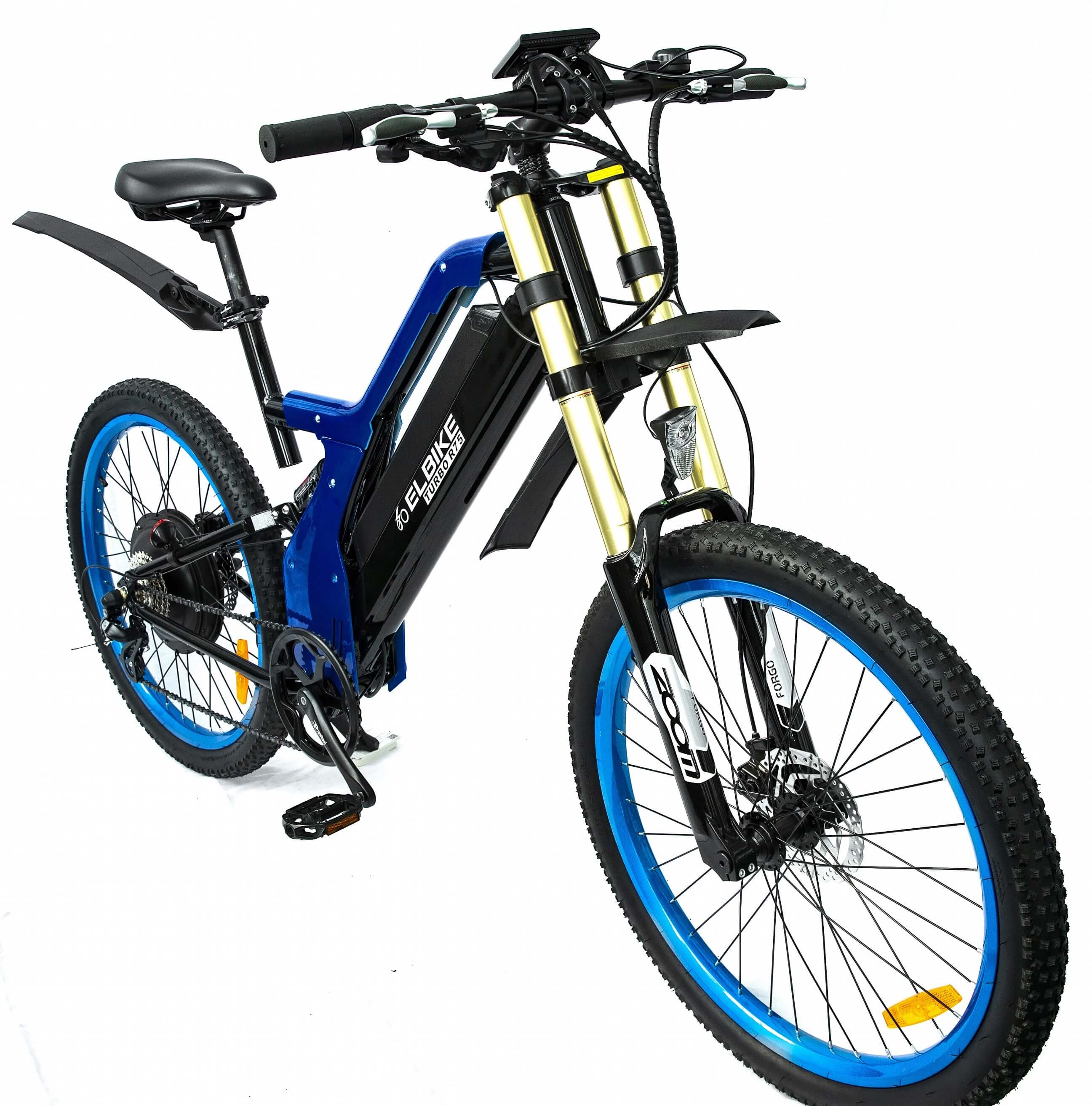 Электровелосипед ELBIKE TURBO R75 VIP – это самая мощная модель в линейке, которая работает на напряжении 48 вольт. Она оснащена мощным безредукторным мотором MXUS мощностью 1500 ватт и имеет ёмкий литий-ионный аккумулятор на 48 вольт и 16 ампер-часов. Благодаря этим характеристикам, велосипед способен разгоняться до 50 километров в час и проезжать расстояния до 75 километров без необходимости использовать педали, управляясь только ручкой газа. Также, в режиме педалирования, можно проехать до 110-120 километров.