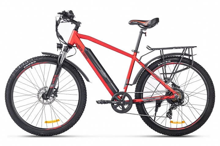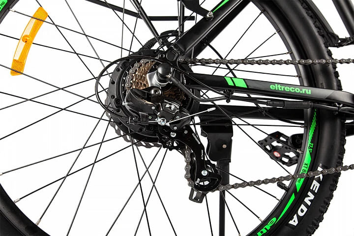 Колеса диаметром 27,5" с внедорожными покрышками Kenda обеспечивают отличное сцепление с грунтом и комфорт на различных поверхностях. Семискоростная трансмиссия обеспечивает гладкое переключение передач. В комплекте также идут монохромный LCD-дисплей, передняя LED-фара, усиленный металлический задний багажник и полноразмерные крылья.