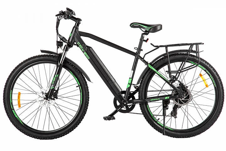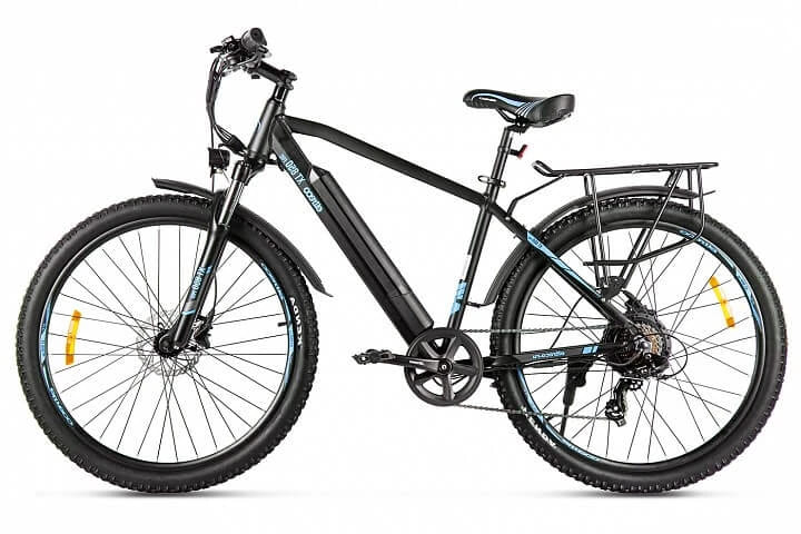 Электромотор мощностью 500 Вт, размещенный сзади, обеспечивает максимальную скорость до 38 км/ч. Быстросъемный литий-ионный аккумулятор на 36 В и 10 Ач, интегрированный в раму для удобства. Пробег на одном заряде батареи достигает до 50 км.