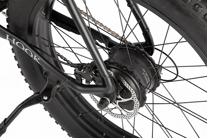 Eltreco HOOK имеет лёгкую алюминиевую раму с интегрированной быстросъёмной батареей. Напряжение аккумулятора составляет 48 В, а ёмкость — 12 А/ч. Это позволяет проехать до 60 км на одном заряде.