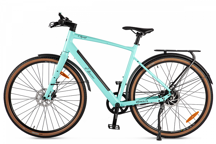 Eltreco Olymp представляет собой стильный электровелосипед для комфортных поездок по городу. Его элегантная конструкция включает в себя большие тонкие шоссейные колеса диаметром 28 дюймов (700C) и легкую алюминиевую раму с интегрированным быстросъемным аккумулятором. Уникальной особенностью этой модели является ременной привод, который, в отличие от цепи, более долговечен и легок в уходе. Эта особенность также способствует увеличению клиренса, делая велосипед более проходимым. На Eltreco Olymp установлены дисковые гидравлические тормоза Tectro, интеллектуальный ассистент педалирования с 5 уровнями поддержки и большой цветной LCD-дисплей.