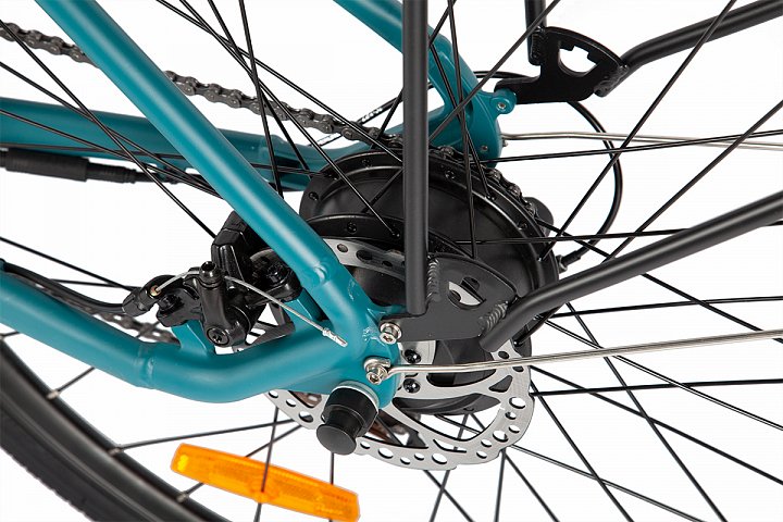 Представляем вам новый велосипед с лёгкой и прочной алюминиевой рамой. Он оснащен большими колёсами 28" с узким профилем резины для отличной устойчивости. Быстросъёмный аккумулятор расположен внутри рамы для удобства и легкости доступа. Велосипед оснащен электромотором мощностью 250 Ватт и 7-скоростной трансмиссией Shimano. Прочный металлический задний багажник обеспечивает надёжность и удобство для перевозки грузов. А яркая светодиодная фара на передней части обеспечивает отличное освещение дороги.