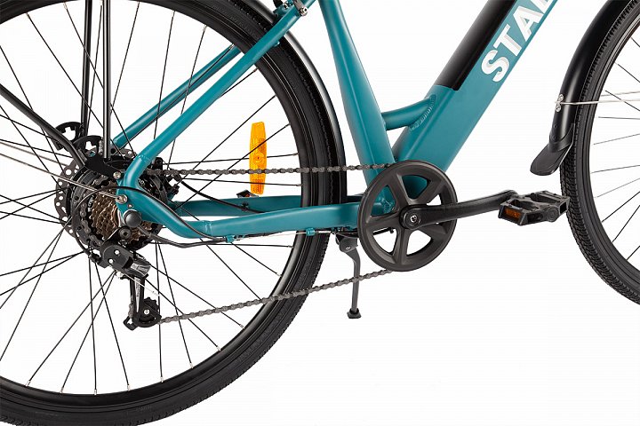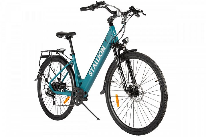 Этот велосипед имеет алюминиевую раму, которая сочетает в себе прочность, долговечность и небольшой вес. Благодаря большим 28-дюймовым колесам и тонким туристическим шинам, он обеспечивает отличную устойчивость и комфортную езду на различных дорожных покрытиях. Велосипед Stallion питается от аккумулятора емкостью 36 В и 7,8 Ач, что позволяет проехать до 50 км на одном заряде. Аккумулятор удобно расположен внутри рамы, что делает дизайн более эстетичным, сохраняя при этом легкий доступ для быстрой зарядки. С мощным электромотором мощностью 250 Вт вы с лёгкостью достигнете желаемой скорости, сохраняя при этом контроль и эффективность.