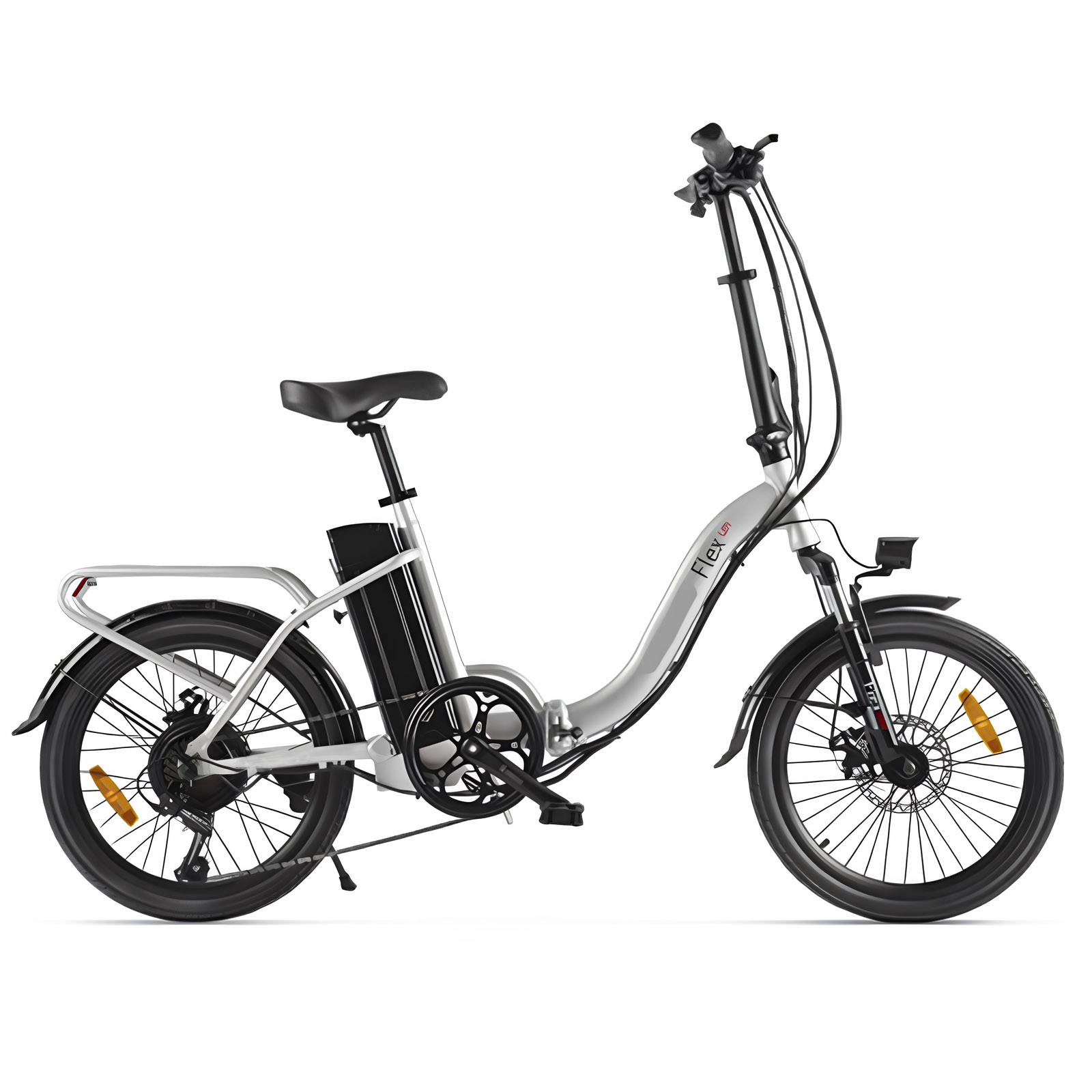 Велосипед оснащён амортизационной вилкой, которая эффективно смягчает удары от неровностей дороги, а механические дисковые тормоза обеспечивают надёжное и стабильное торможение в любых условиях. Колёса диаметром 20 дюймов гарантируют хорошую маневренность и устойчивость. Eltreco Flex UP — это идеальный выбор для тех, кто ищет мощный, практичный и компактный электротранспорт для повседневных поездок и активного образа жизни.