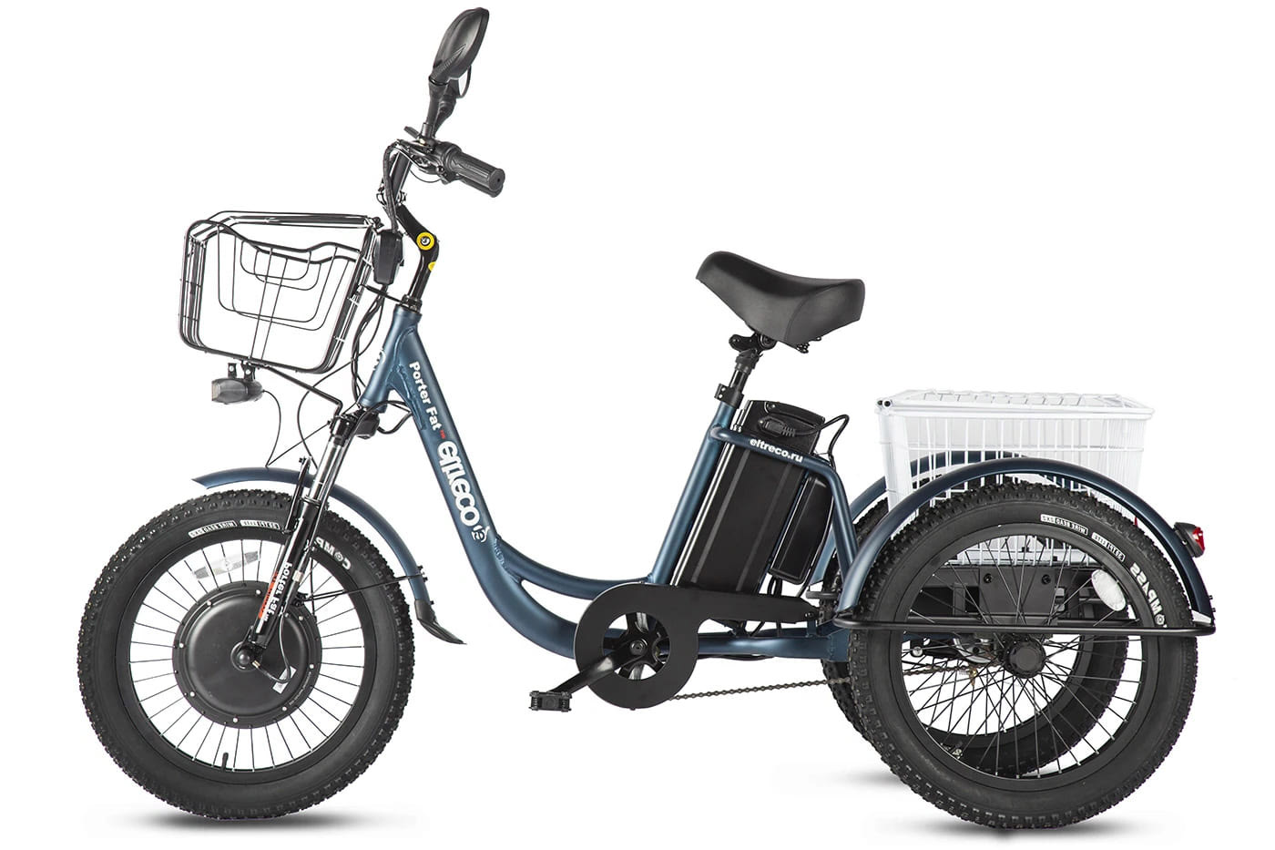 Электрический велогибрид трицикл Eltreco Porter FAT 500 UP! станет вашим надежным помощником в повседневных задачах и удовлетворит потребности в комфортной мобильности.