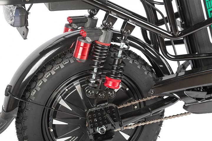 Автономность устройства впечатляет: аккумулятор емкостью 30000 мАч и напряжением 60 В обеспечивает впечатляющий пробег до 100 км на одном заряде. Это делает электровелосипед идеальным выбором для продолжительных путешествий или повседневных маршрутов. Габариты модели составляют 170x115x80 см, а вес в 57 кг добавляет устойчивости при управлении, сохраняя маневренность.