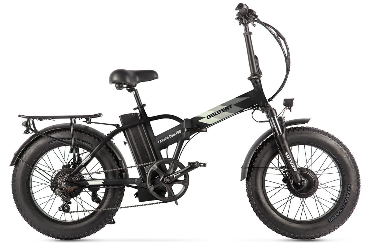 Gelbert Saturn Dual PRO — это мощный электровелосипед с полным приводом, оснащённый двумя двигателями суммарной мощностью 1000 Вт. Это обеспечивает высокую тягу и уверенное поведение на любой поверхности. Прочная алюминиевая рама и общий вес в 33.5 кг делают его устойчивым и комфортным в поездках по городу и за его пределами.