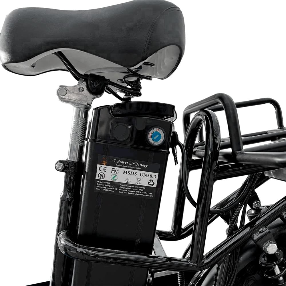 Конструкция включает пружинно-масляную амортизирующую подвеску и гидравлические дисковые тормоза, обеспечивающие комфорт и безопасность даже на высокой скорости и сложных участках дороги. Колёса диаметром 16 дюймов сочетают проходимость и маневренность, а общий вес модели — 65 кг — подчёркивает её усиленную, промышленную сборку. GT MONSTER 23Ah — это выбор для тех, кому нужны мощность, надёжность и готовность к любым дорожным вызовам.