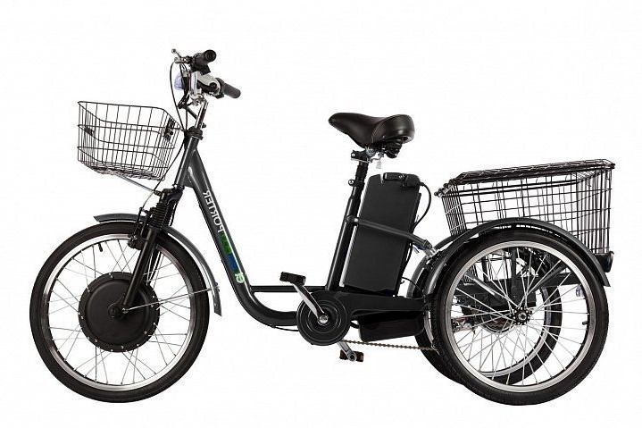 Электрический трицикл GM PORTER – это замечательный помощник для Вашего дома и дачи. Два колеса сзади делают его очень устойчивым и позволяют перевозить в его вместительной корзине до 50 кг полезного груза. Теперь Вам не нужно балансировать и пытаться удержаться на велосипеде, спокойно и уверенно преодолевайте километры дороги с пользой для себя и без всяких усилий!