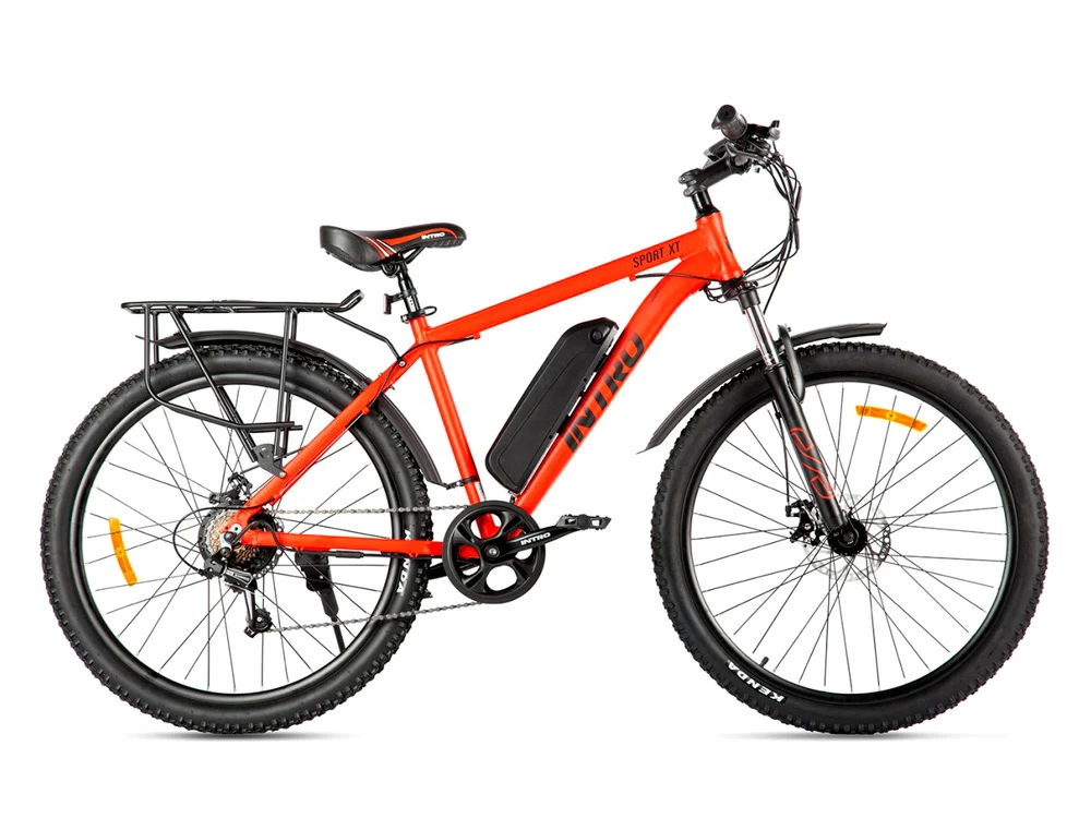 Электровелосипед INTRO Sport XT также оснащен качественным навесным оборудованием, включая 7-скоростную трансмиссию Shimano с переключателями Micro Shift, велокомпьютер с LCD-дисплеем и полный усиленный металлический багажник с прижимной скобой, а также пластиковыми крыльями.