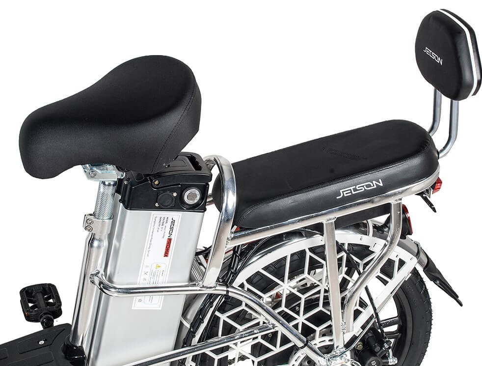 Несмотря на свой вес всего 28 кг, электровелосипед Jetson V8 PRO способен выдержать нагрузку до 200 кг, что делает его идеальным для взрослых пользователей. Технические характеристики позволяют использовать эту модель как для одного, так и для двух пользователей, включая пассажиров. Велик оснащен емким аккумулятором на 12 А*ч и мощным электромотором мощностью 500 Вт. Аккумулятор размещен в специальном блоке под седлом. Согласно заявлениям производителя, эта модель способна разгоняться до 50 км/час, а емкости батареи хватит для преодоления до 35 км на одном заряде.
