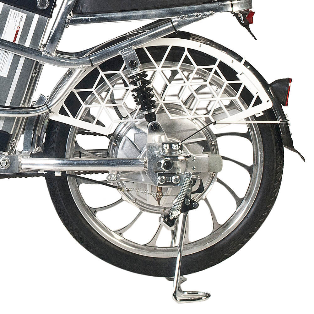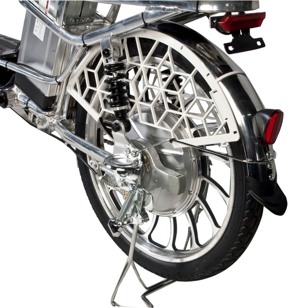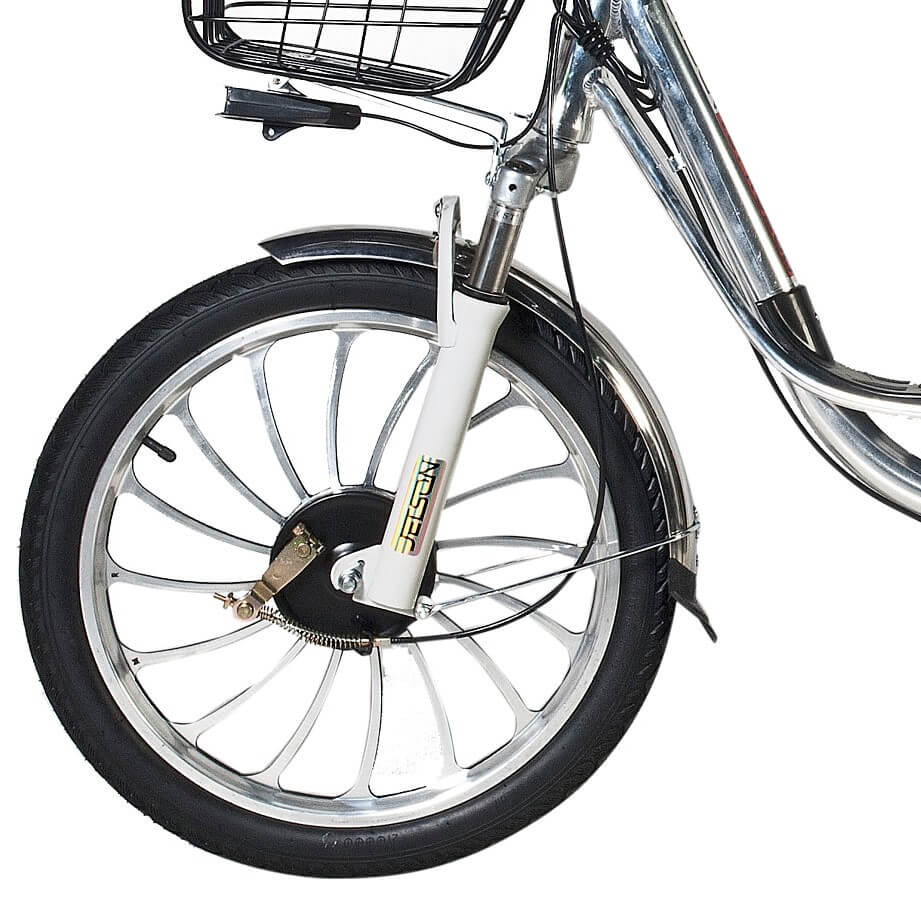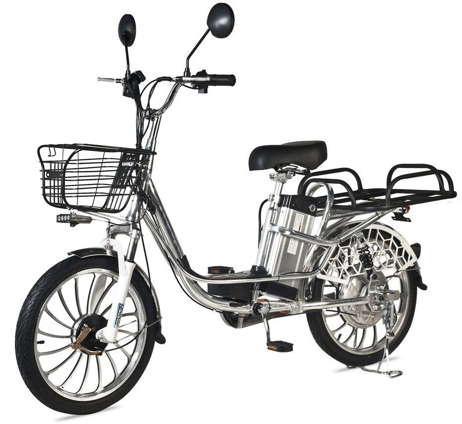 Этот электровелосипед можно с уверенностью назвать транспортным средством с увеличенной проходимостью, так как в рулевой стойке установлены усиленные амортизаторы, позволяющие пересекать неровную местность и преодолевать дорожные неровности. Мощный электродвигатель мощностью 500 Вт легко разгоняет технику до максимальной скорости 40 км/час. Удобное сидение и возможность установки дополнительной батареи позволяют наслаждаться долгими поездками.