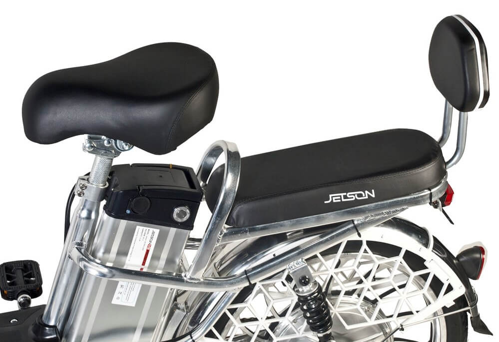 Съемная аккумуляторная батарея надежно спрятана под седельным штырем, чтобы при перевозке пассажиров или грузов минимизировать контакт.