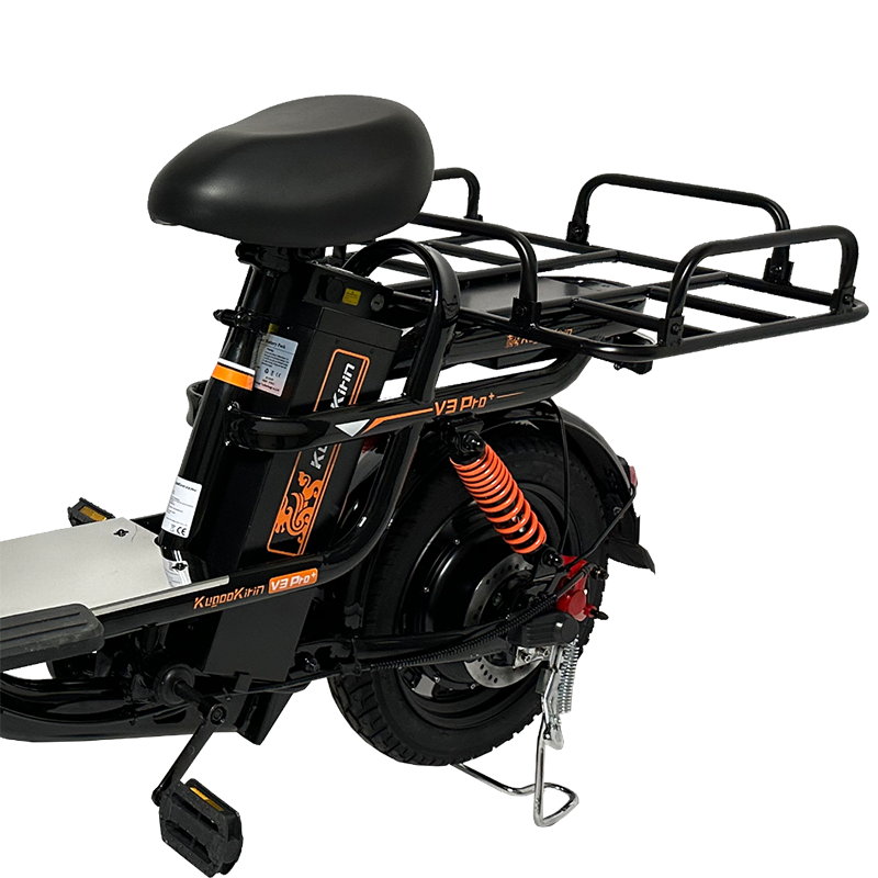 Большой багажник и вместительная корзина спереди позволяют перевозить множество посылок, а грузоподъемность в 200 кг позволяет загружать даже самые тяжелые грузы. Большой экран отображает информацию о заряде аккумулятора и скорости, а удобное сиденье и платформа для ног делают длительные поездки комфортными.