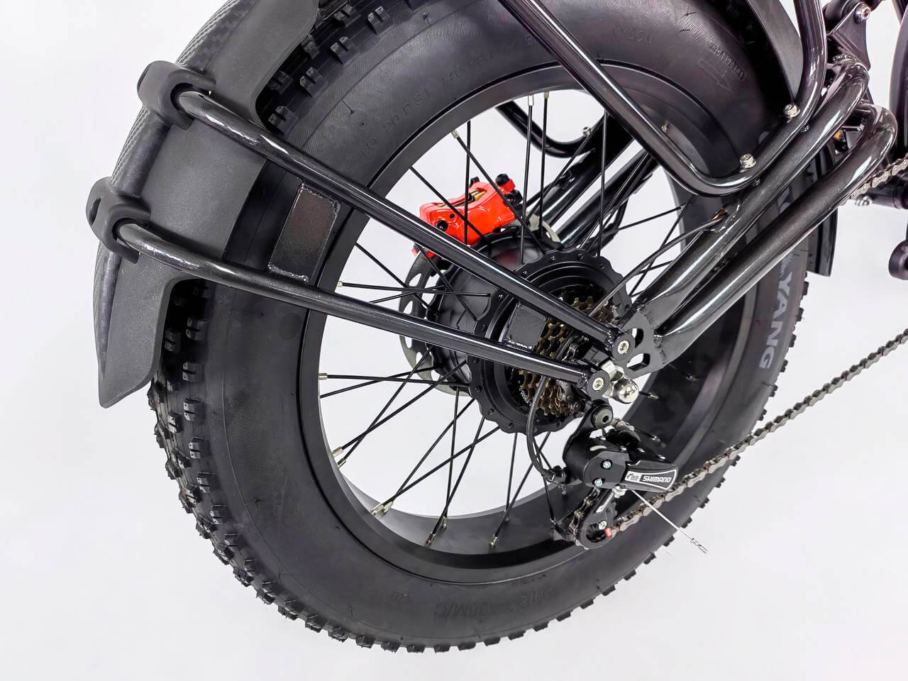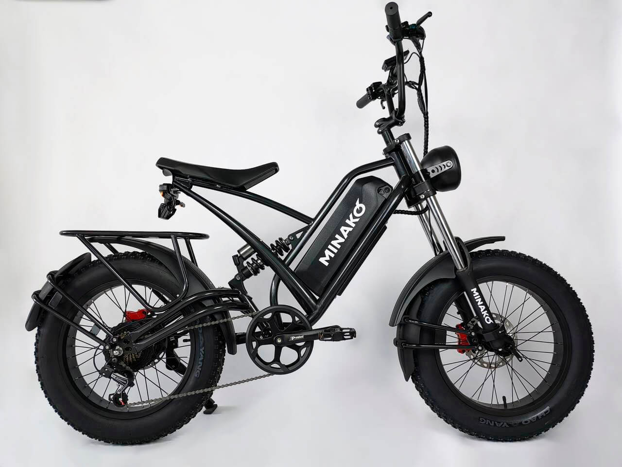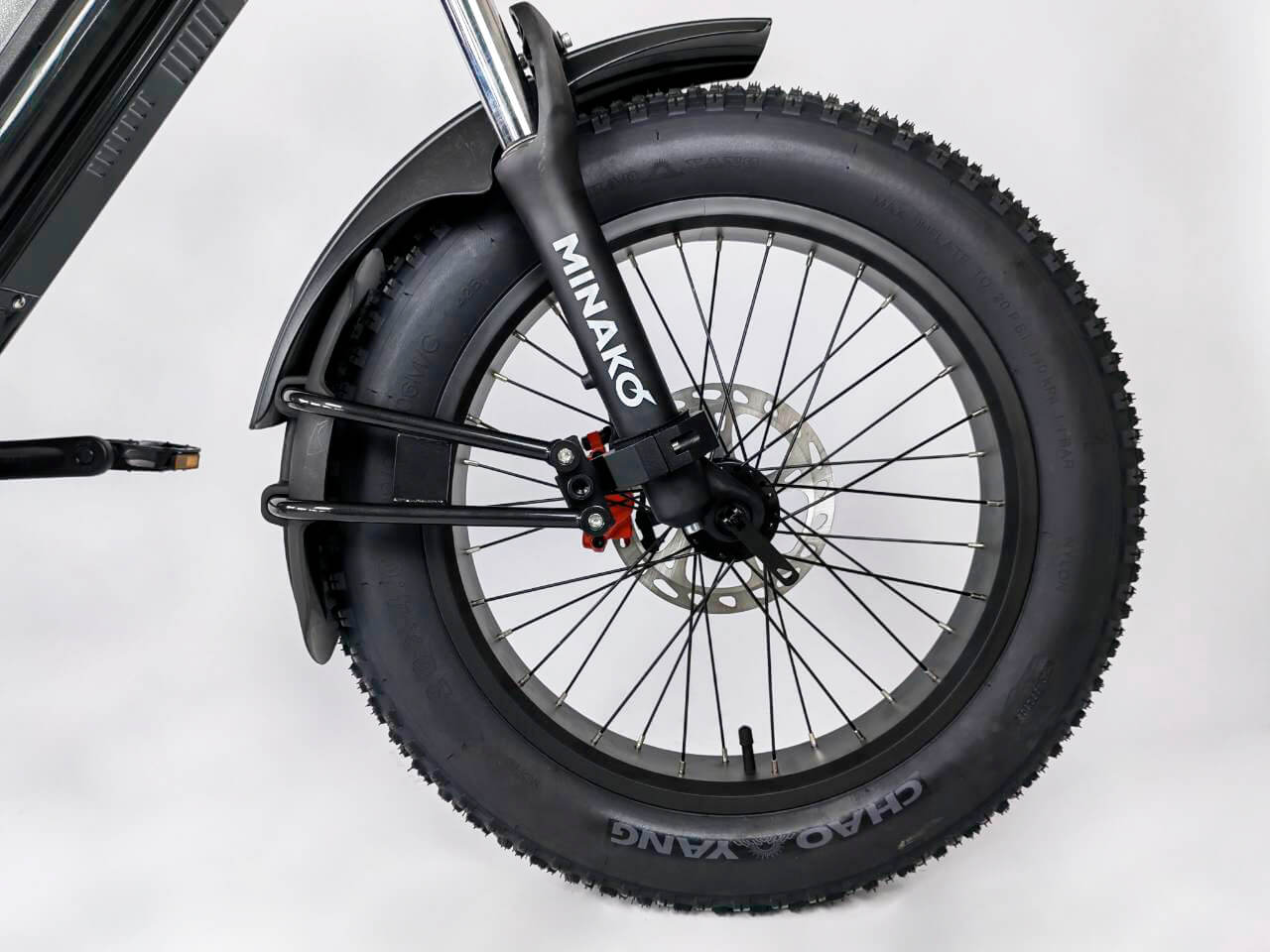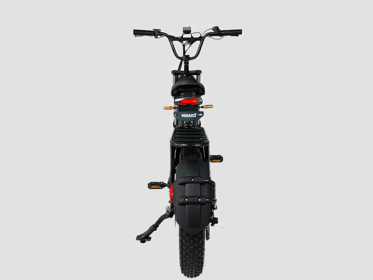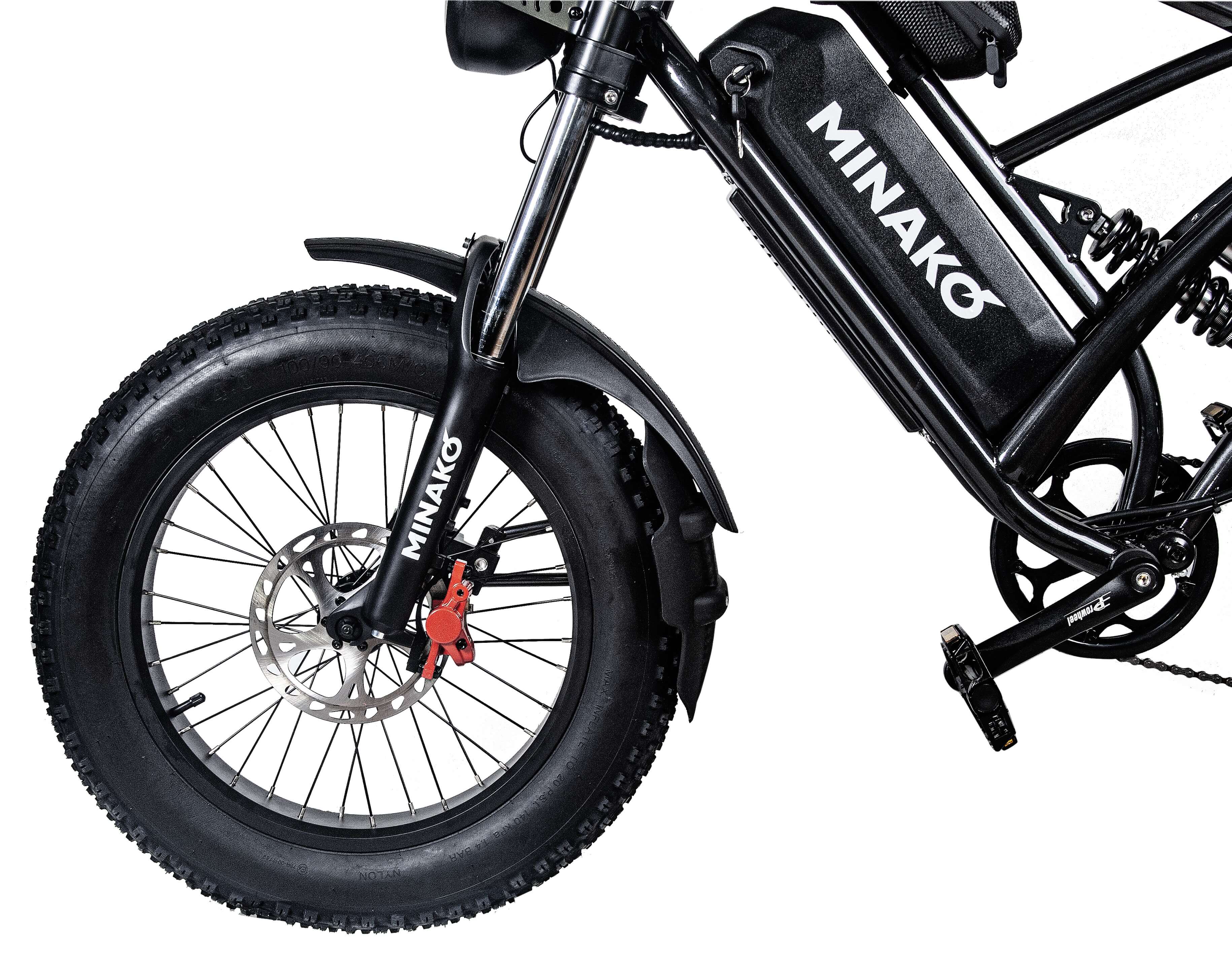 20-дюймовые колеса с 4-дюймовыми шинами выглядят агрессивно и обеспечивают отличное сцепление с различными поверхностями. Безопасность велосипеда гарантируется большой светодиодной фарой, надежными тормозами и наличием бортового компьютера. Бортовой компьютер предоставляет райдеру полезную информацию, такую как текущая скорость и уровень заряда батареи. Minako FOX позволяет безопасно наслаждаться поездками как по ровной дороге, так и по пересеченной местности, независимо от погодных условий и времени суток.