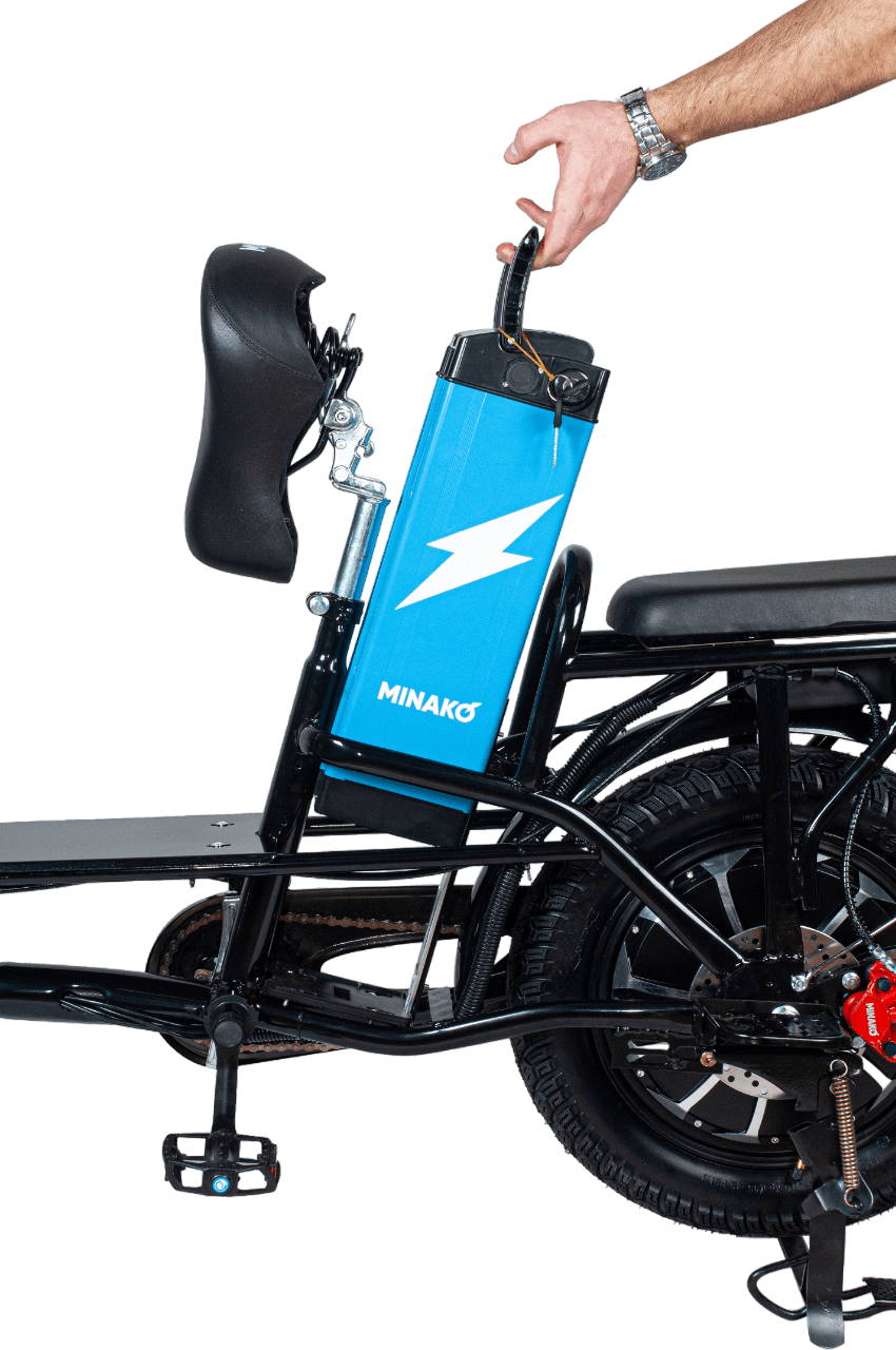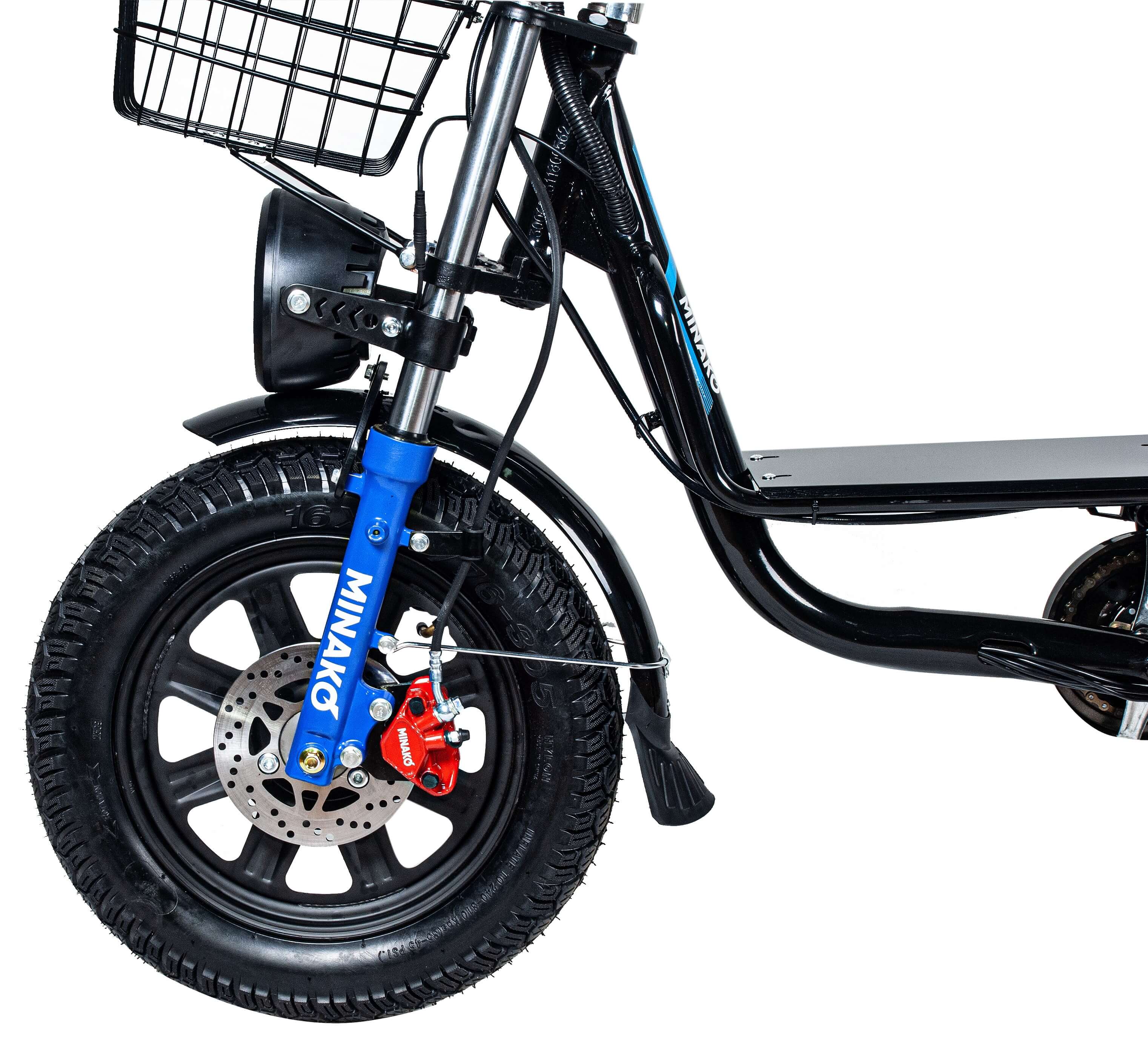 Конструкция рамы велосипеда надежна и низкая. Компания Minako сделала эту модель лучше, чем когда-либо. Она оборудована качественными педалями и прочным багажником. Электромотор мощностью 500 Вт способен разогнать велосипед до скорости 60 км/час.