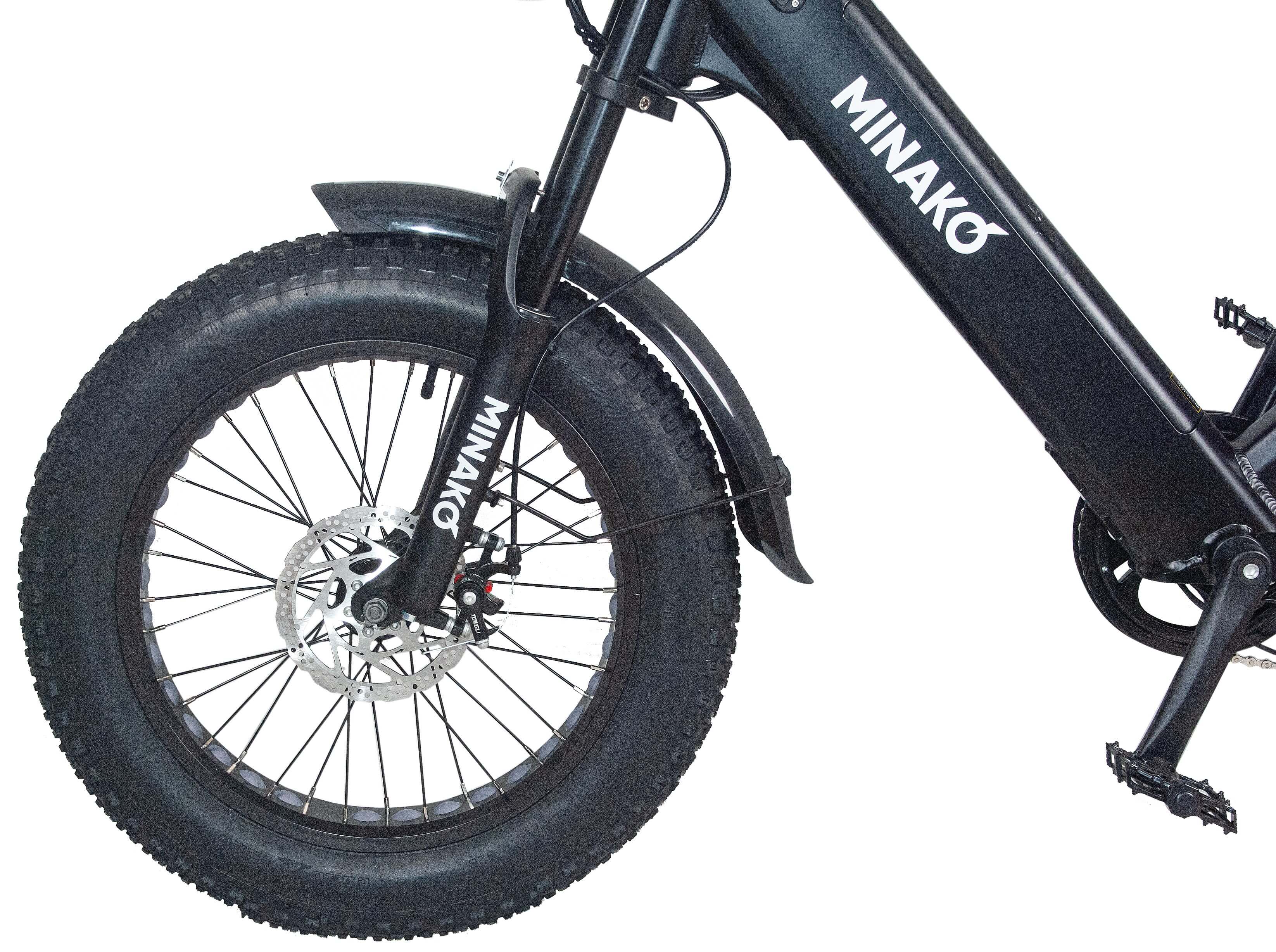 Дисковые тормоза гарантируют надежное и эффективное торможение в любых условиях, обеспечивая высокий уровень контроля над скоростью и безопасность во время катания. Покрышки FatBike 20x4 обеспечивают отличное сцепление и стабильность на различных типах местности. Благодаря широким покрышкам, вы сможете справиться с гравием, песком, снегом и другими неровностями. Minako Bizon готов к любым приключениям на бездорожье.