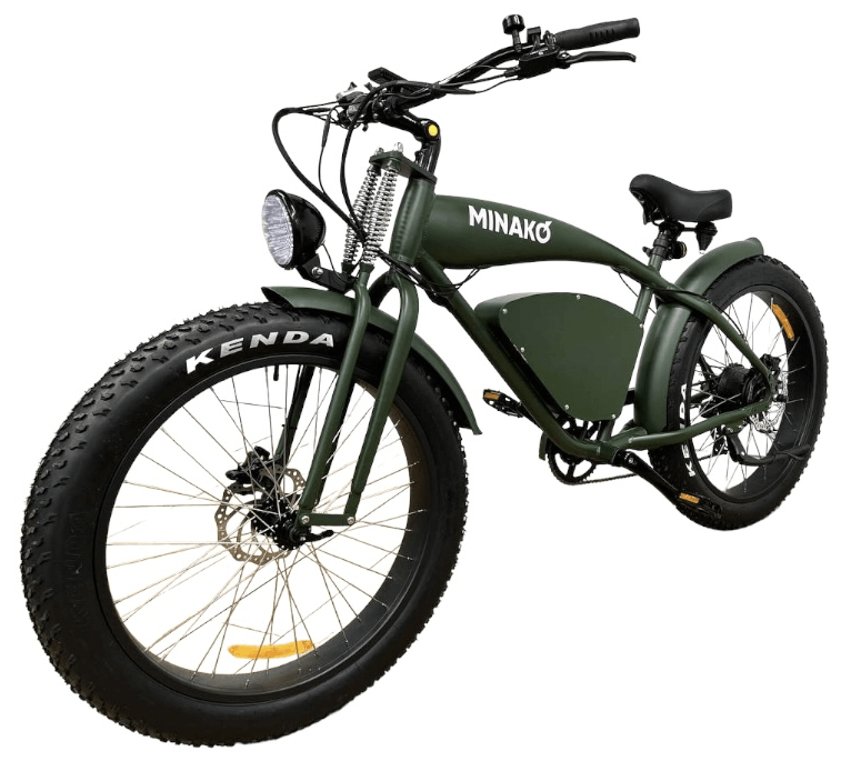 Двигатель электровелосипеда Minako FatBike №2 обладает мощностью 500 W, что позволяет ему развивать скорость до 50 км/ч.