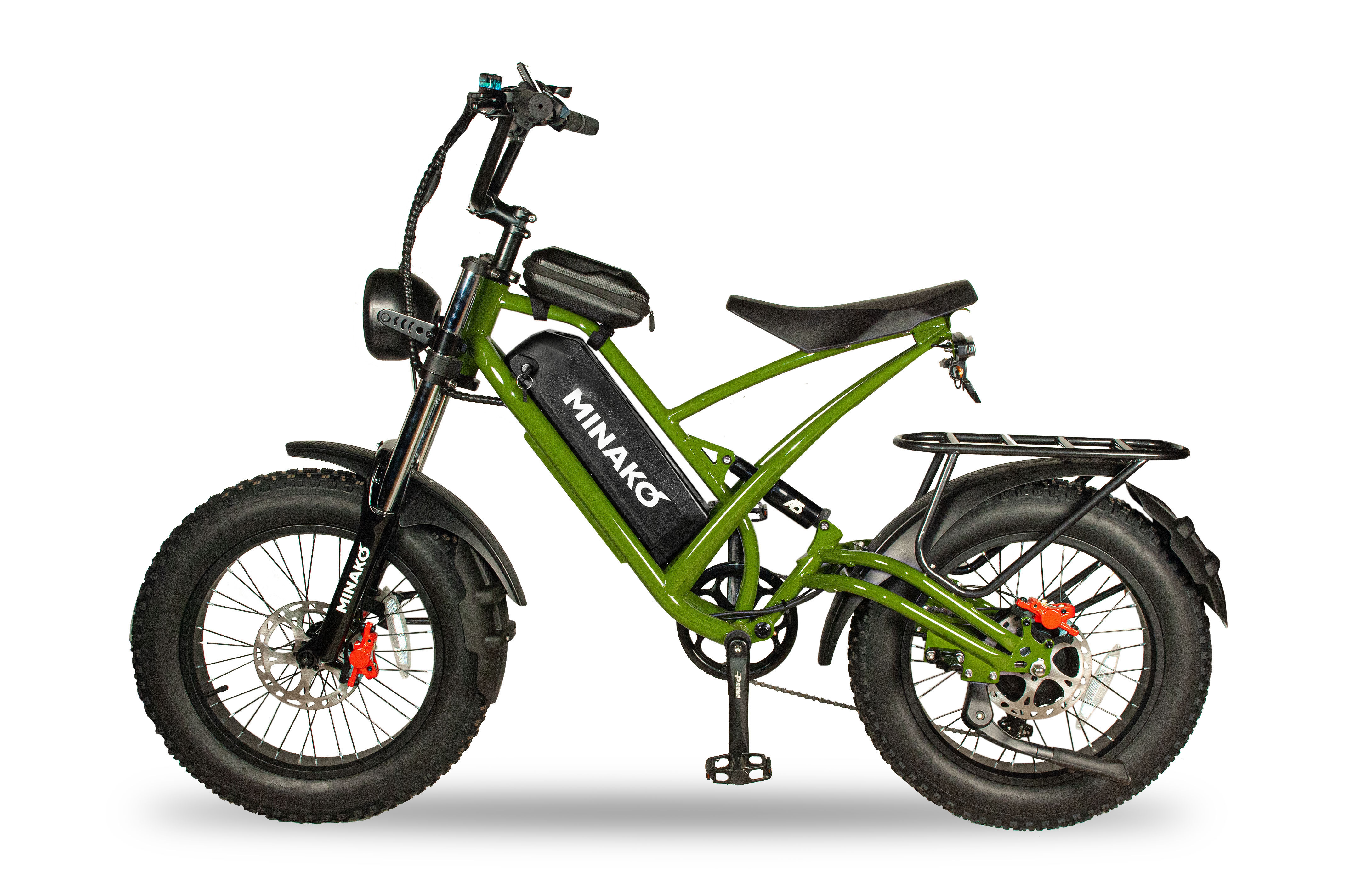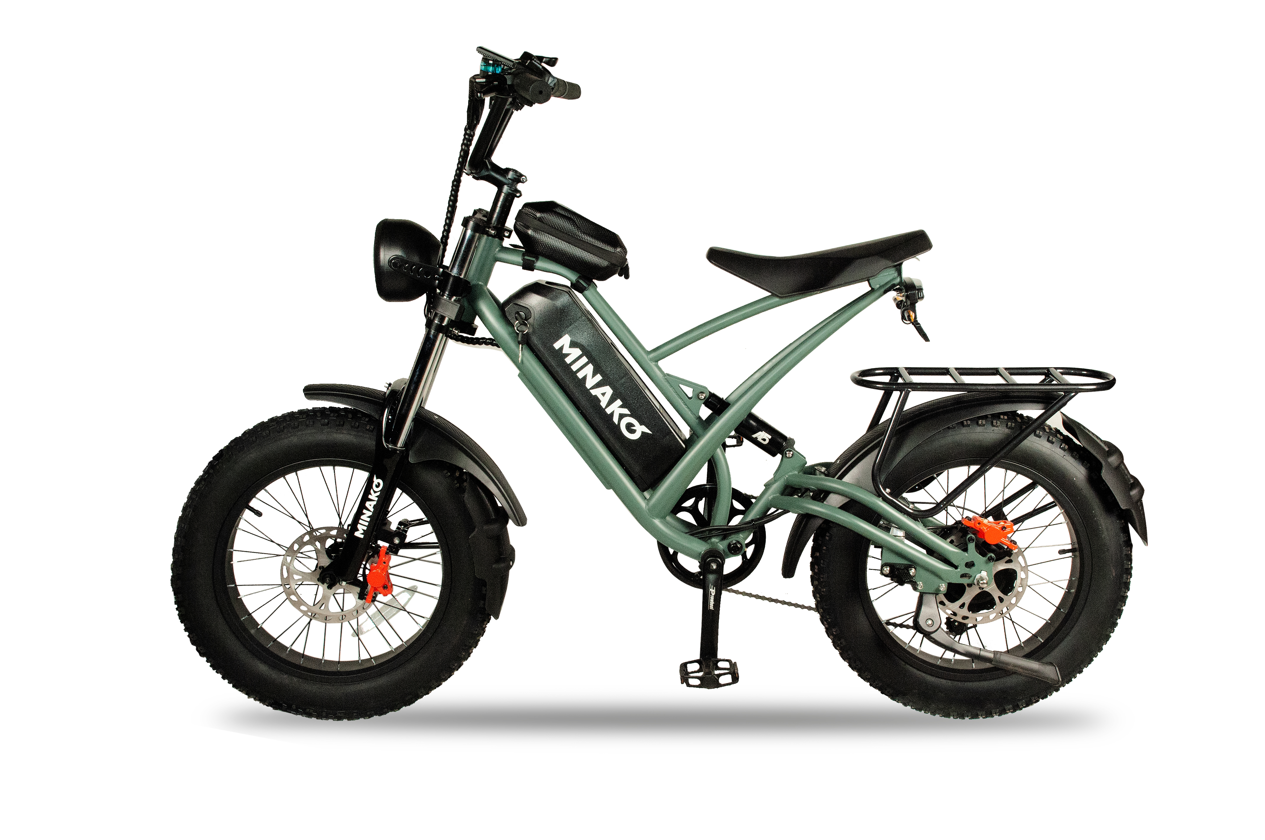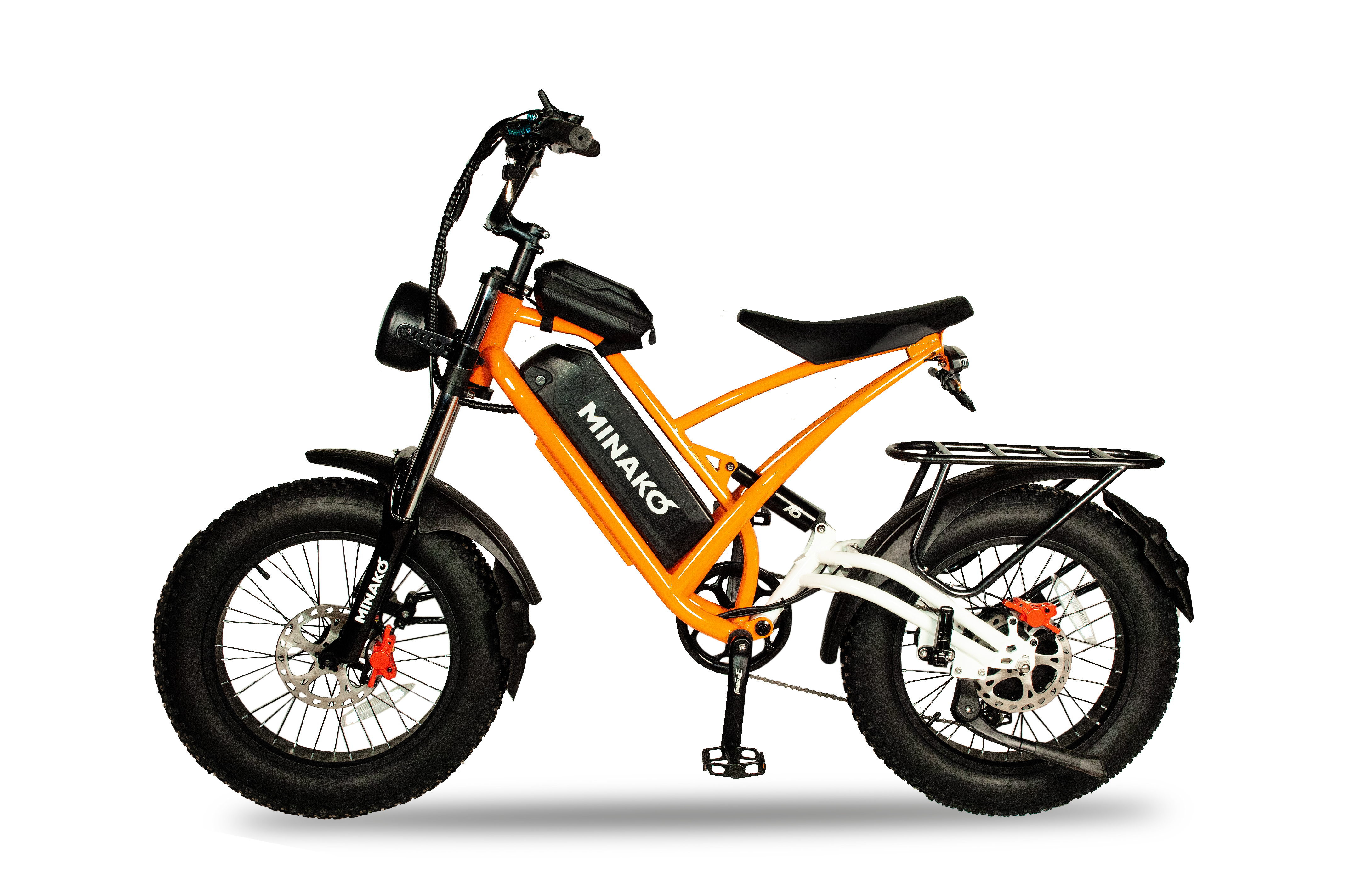 20-дюймовые колеса с 4-дюймовыми шинами выглядят агрессивно и обеспечивают отличное сцепление с различными поверхностями. Безопасность велосипеда гарантируется большой светодиодной фарой, надежными тормозами и наличием бортового компьютера. Бортовой компьютер предоставляет райдеру полезную информацию, такую как текущая скорость и уровень заряда батареи. Minako FOX позволяет безопасно наслаждаться поездками как по ровной дороге, так и по пересеченной местности, независимо от погодных условий и времени суток.