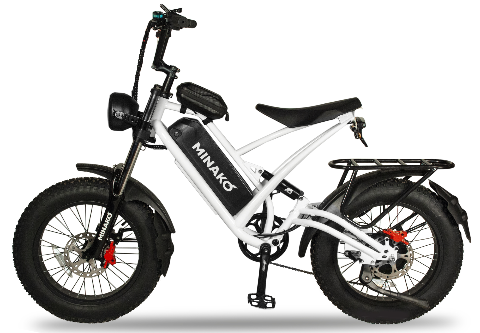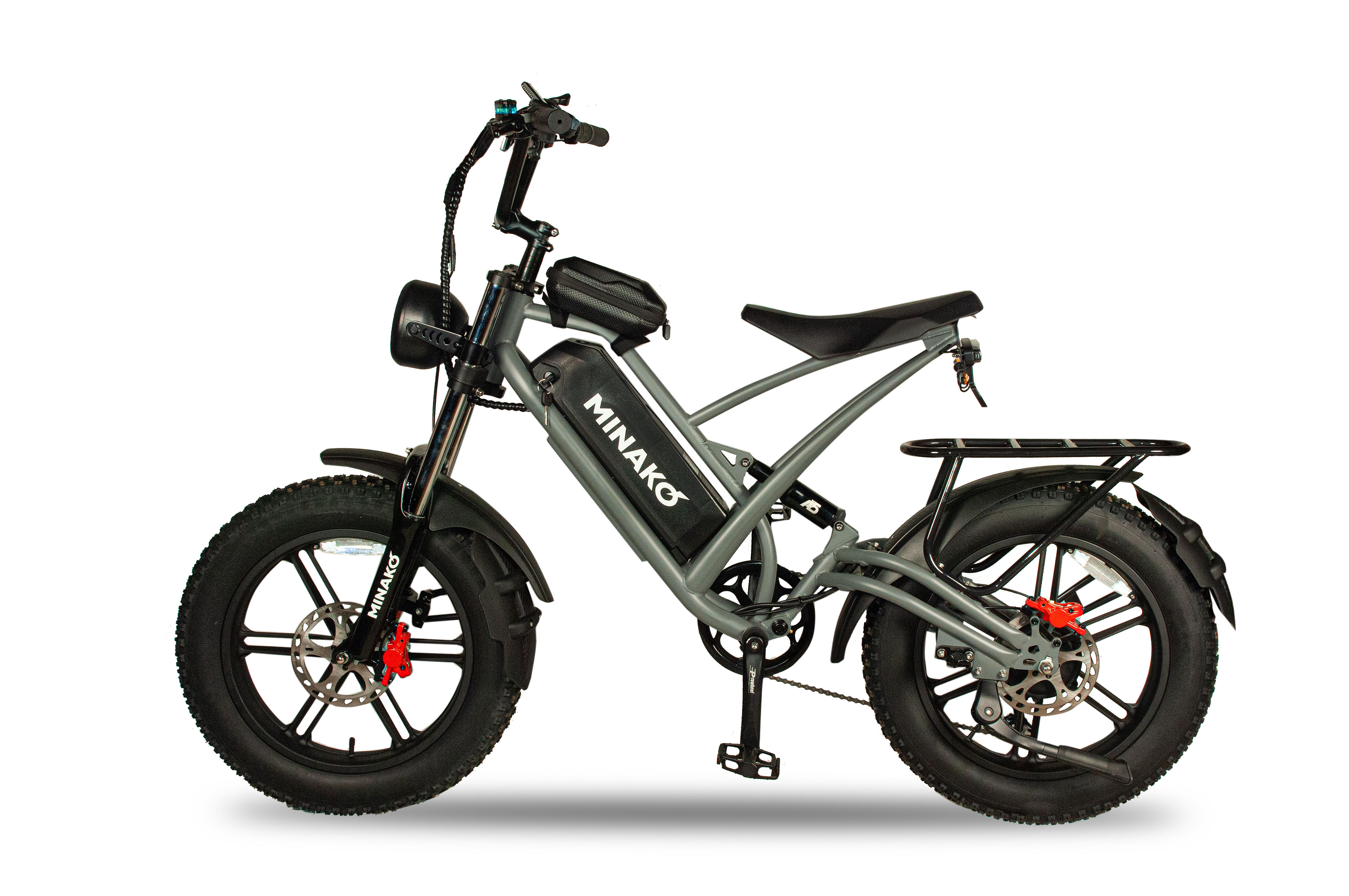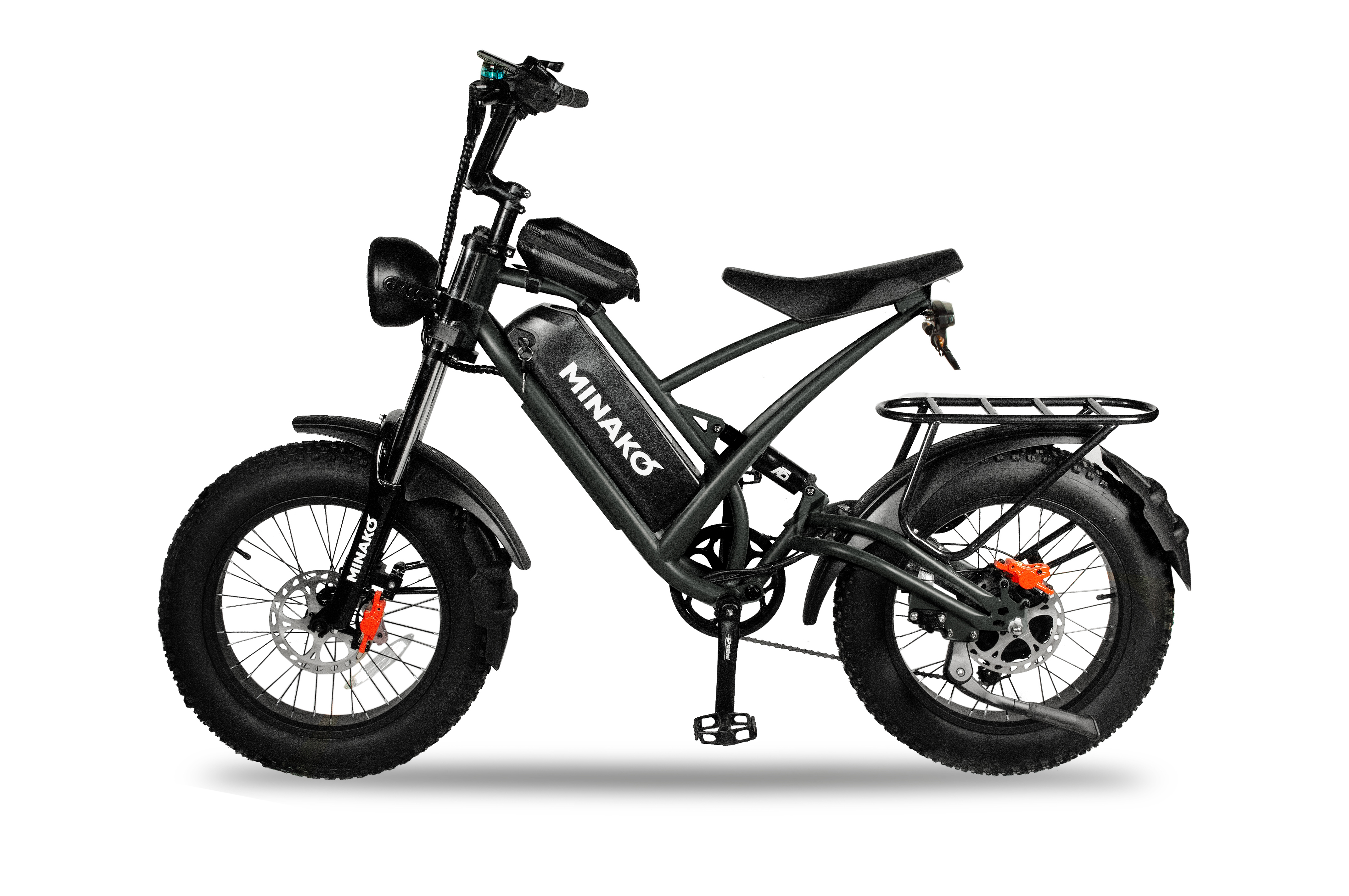20-дюймовые колеса с 4-дюймовыми шинами выглядят агрессивно и обеспечивают отличное сцепление с различными поверхностями. Безопасность велосипеда гарантируется большой светодиодной фарой, надежными тормозами и наличием бортового компьютера. Бортовой компьютер предоставляет райдеру полезную информацию, такую как текущая скорость и уровень заряда батареи. Minako FOX позволяет безопасно наслаждаться поездками как по ровной дороге, так и по пересеченной местности, независимо от погодных условий и времени суток.