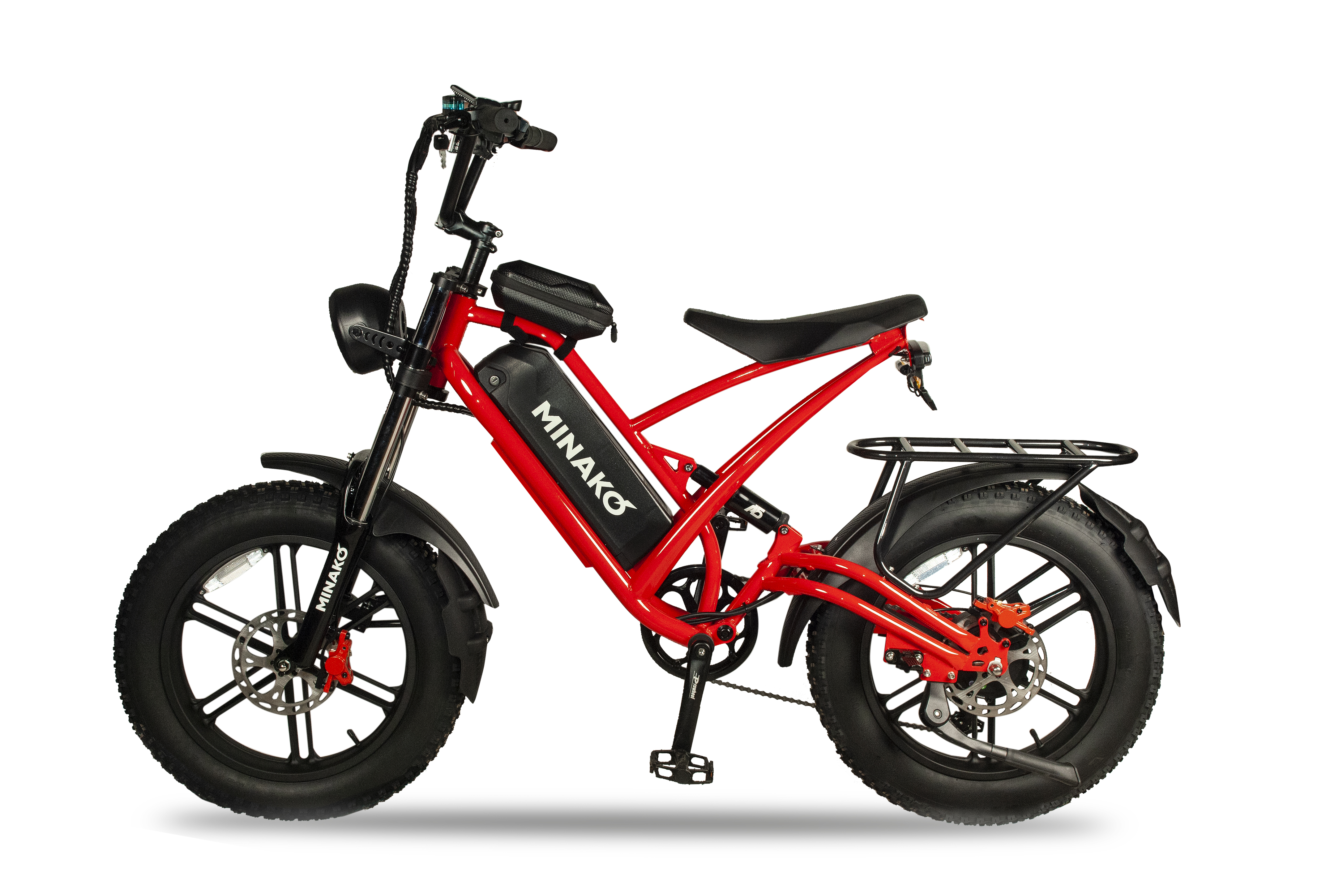 Электровелосипед Minako FOX - модель пользуется огромной популярностью и считается настоящим супербайком. Внешне он напоминает мопед и выглядит стильно и презентабельно. Minako FOX предназначен для активных пользователей, которые ценят скорость и экстремальные ощущения.