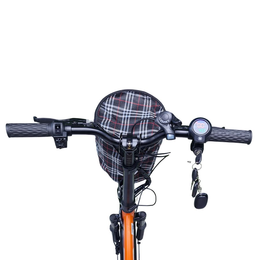 Для безопасности установлены механические дисковые тормоза, обеспечивающие надёжное торможение в любых погодных условиях. Колёса диаметром 20 дюймов с шинами 20×2.125 обеспечивают хорошее сцепление и маневренность. На руле расположен цифровой дисплей, отображающий скорость, уровень заряда, пройденное расстояние и режим работы.