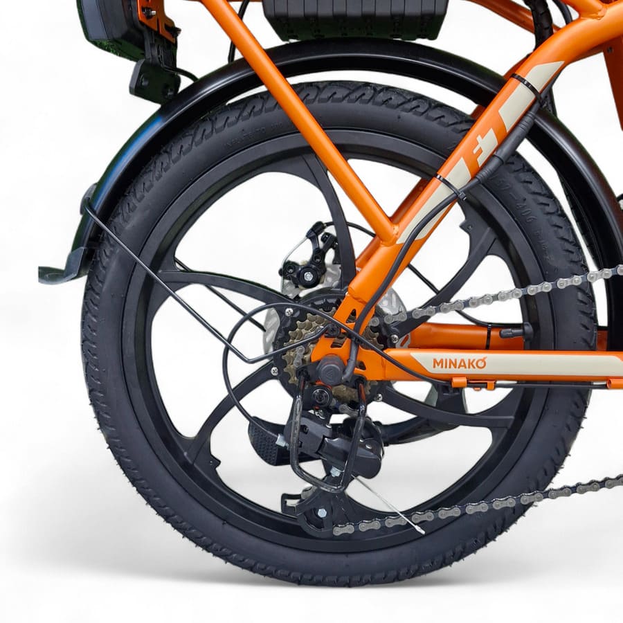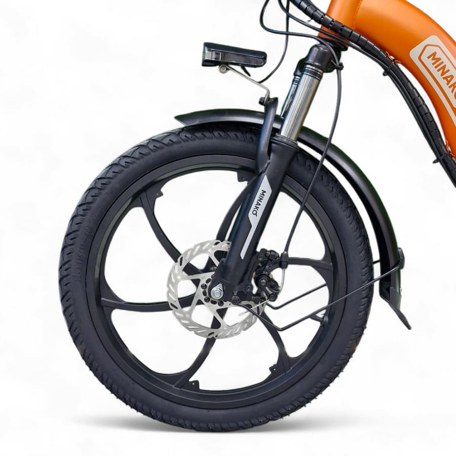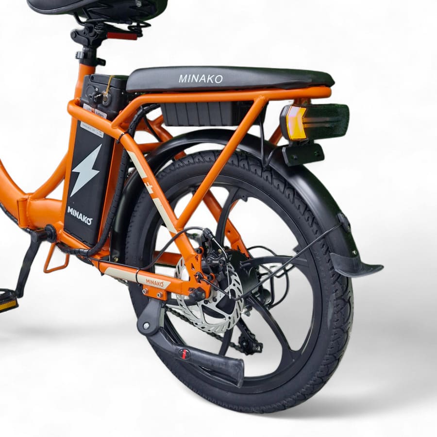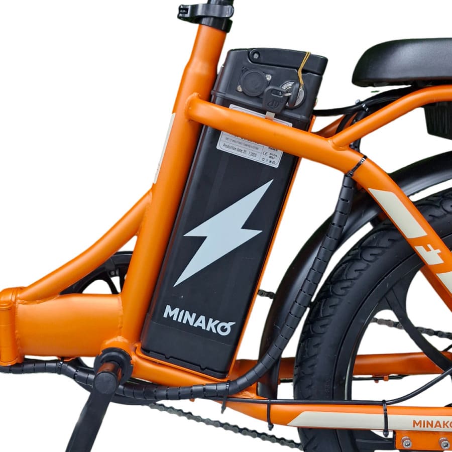 Minako F7 оснащён сигнализацией для защиты от угона, что особенно важно при использовании в городской среде. Это практичный, функциональный и надёжный электровелосипед, сочетающий в себе проходимость, грузоподъёмность и удобство складывания. Идеальный выбор для семьи, доставки или активного отдыха — технологичный транспорт для тех, кто ценит комфорт и свободу передвижения.