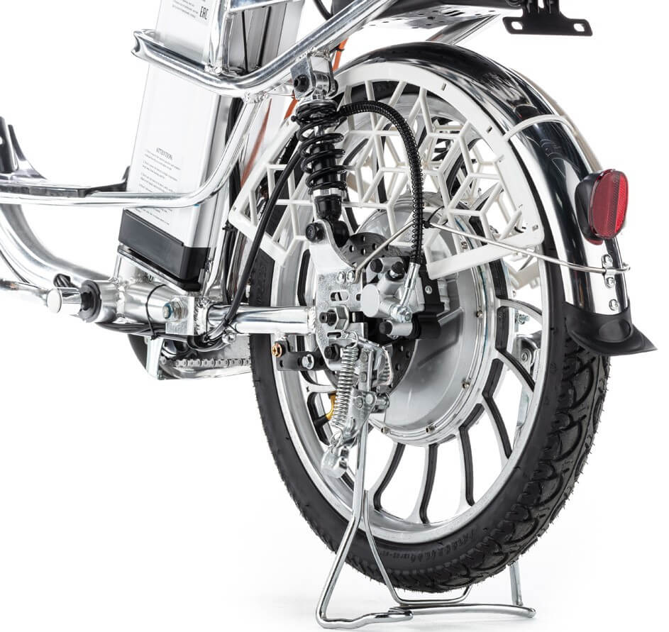 Мощный мотор с номинальной мощностью 240 Вт (максимальной - 350 Вт) позволяет разогнаться до 50 км/ч. А благодаря литий-ионному аккумулятору на 30 Ah, велосипед обеспечивает впечатляющий пробег до 45 км на одном заряде. Система работает при напряжении 60V, обеспечивая быстрое разгоняется и оптимальное расходование энергии.