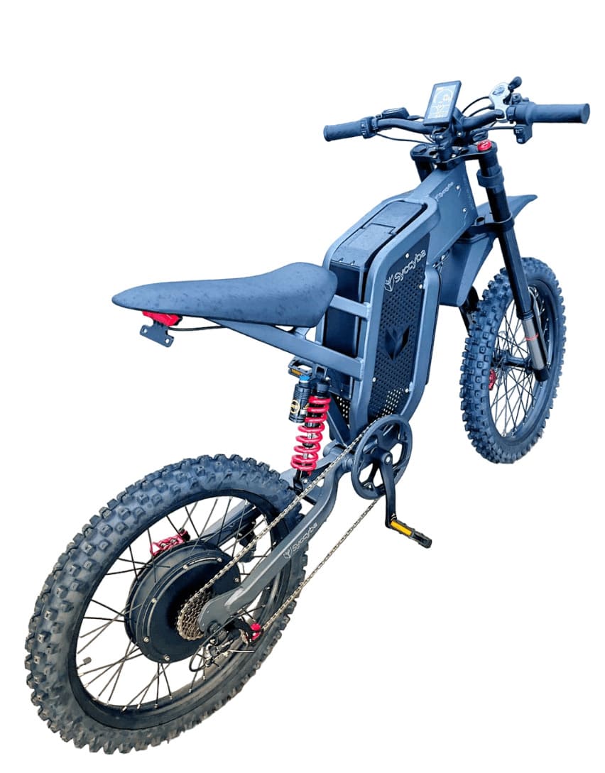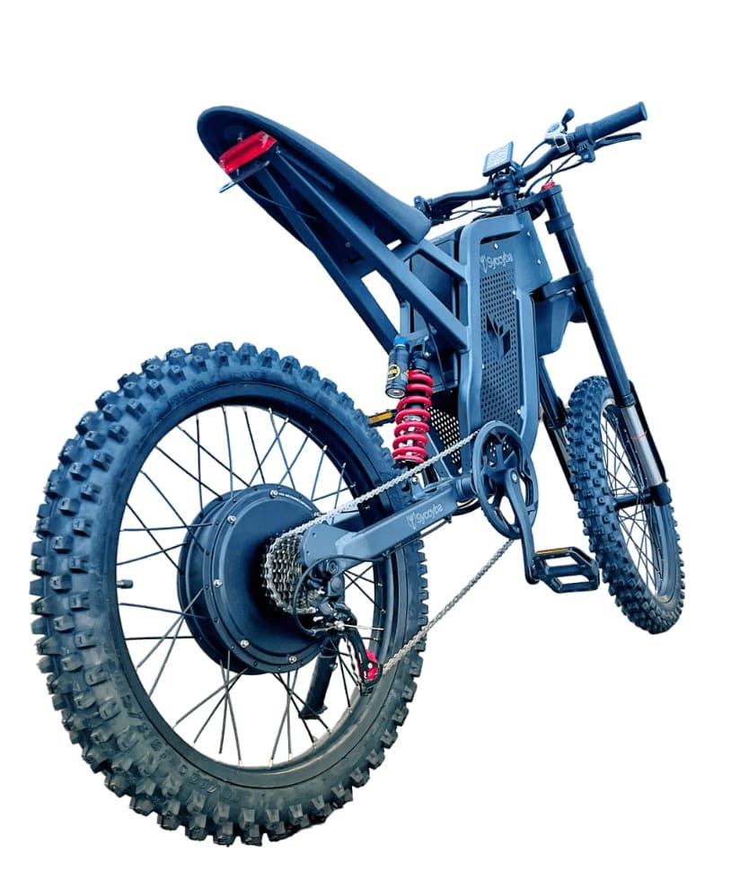 Мощность электродвигателя составляет 6000 Вт, что позволяет разгоняться до 85 км/ч. Одного заряда литий-ионной батареи ёмкостью 60V/30Ah хватает на расстояние до 80 км. Вес велосипеда — 40 кг, а максимальная нагрузка — 130 кг.