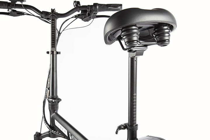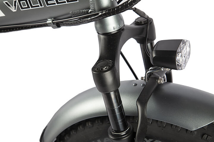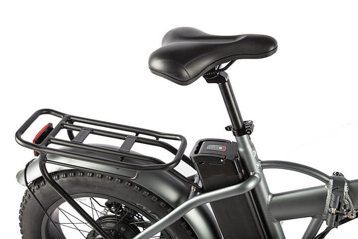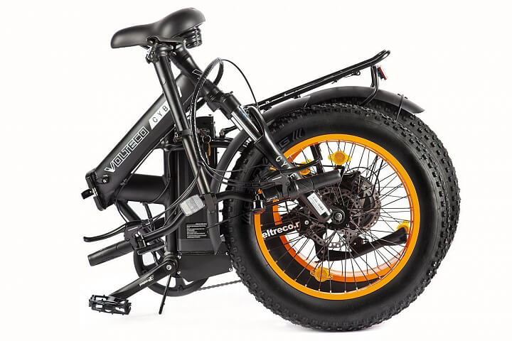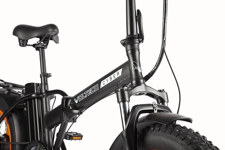 Несмотря на свою компактность, фэтбайк Volteco Cyber подходит для крупных райдеров, имея грузоподъемность 110 кг. Длинный подседельный штырь также позволяет регулировать положение сиденья в зависимости от роста.