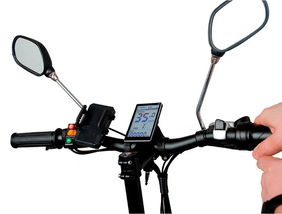 Этот складной велосипед оснащен всеми необходимыми деталями для безопасной езды. Он имеет переднее и заднее освещение, а его дисковая механическая тормозная система обеспечивает надежную и своевременную остановку, обеспечивая максимальный комфорт для райдера. Колесная часть надежно сцеплена с поверхностью, обеспечивая плавное и мягкое движение, а подседельный амортизатор добавляет дополнительный комфорт. Другие важные характеристики включают в себя зеркала заднего вида, удобную подножку, информативный дисплей и звуковой сигнал.