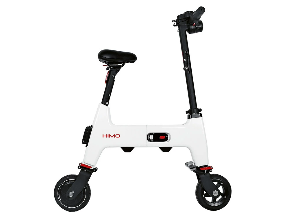 Электровелосипед Xiaomi Himo H1 - представляет собой уникальное изобретение, визуально напоминающее самокат, но с оснащением сиденья. В его компоновке присутствуют два колеса, однако отсутствуют педали. Благодаря складному механизму, велосипед легко и компактно складывается, позволяя удобно помещать его в обычный рюкзак. Его легкий вес в 13 кг облегчает перенос велосипеда на руках при разряженном аккумуляторе.