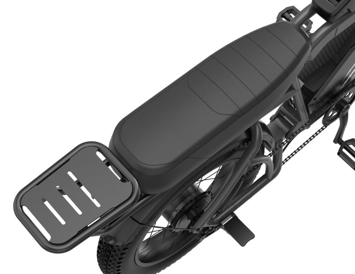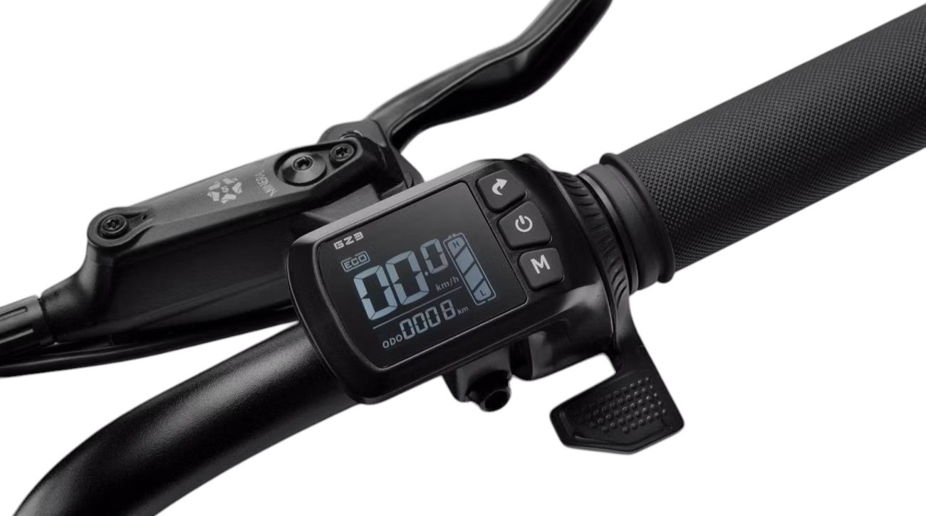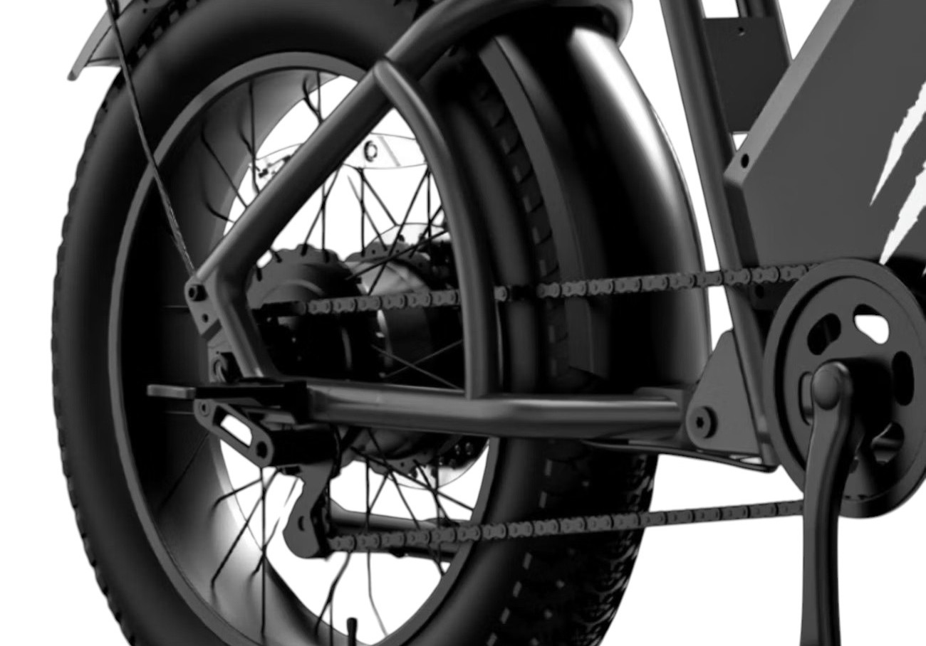 Конструкция выполнена из аэрокосмического алюминиевого сплава, обеспечивающего прочность при относительно небольшом весе — всего 36,5 кг. Высокий клиренс и увеличенные колёса диаметром 20×4.0 позволяют уверенно преодолевать выбоины, бордюры и глубокие ямы даже на высокой скорости. Уклон, который способен преодолеть велосипед, достигает 25%, что делает его идеальным для фрирайда и сложного рельефа.