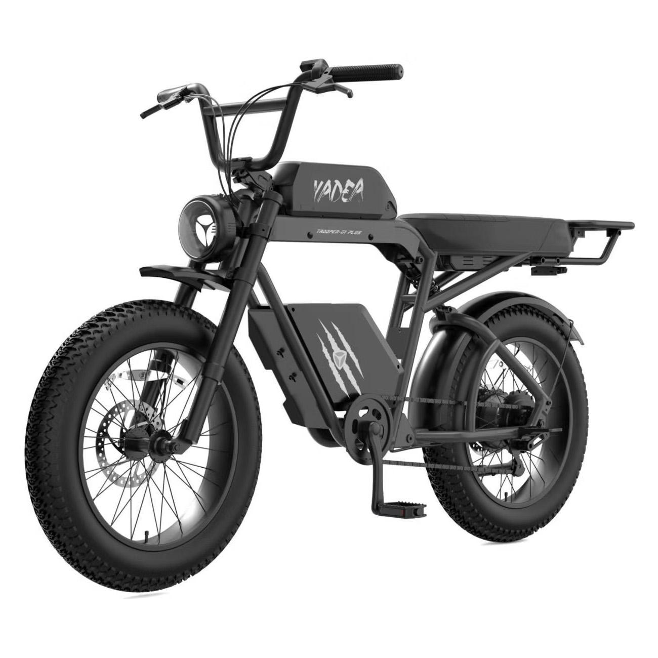 Yadea Боец 01 Плюс сочетает в себе мощь, проходимость и технологичность. Он не складывается, но его прочная конструкция и усиленная сборка рассчитаны на интенсивную эксплуатацию. С максимальной нагрузкой до 150 кг, умным анализом педалирования и увеличенной эффективностью энергопотребления на 30%, этот велосипед становится незаменимым спутником для тех, кто хочет покорять городские ландшафты с духом приключения.