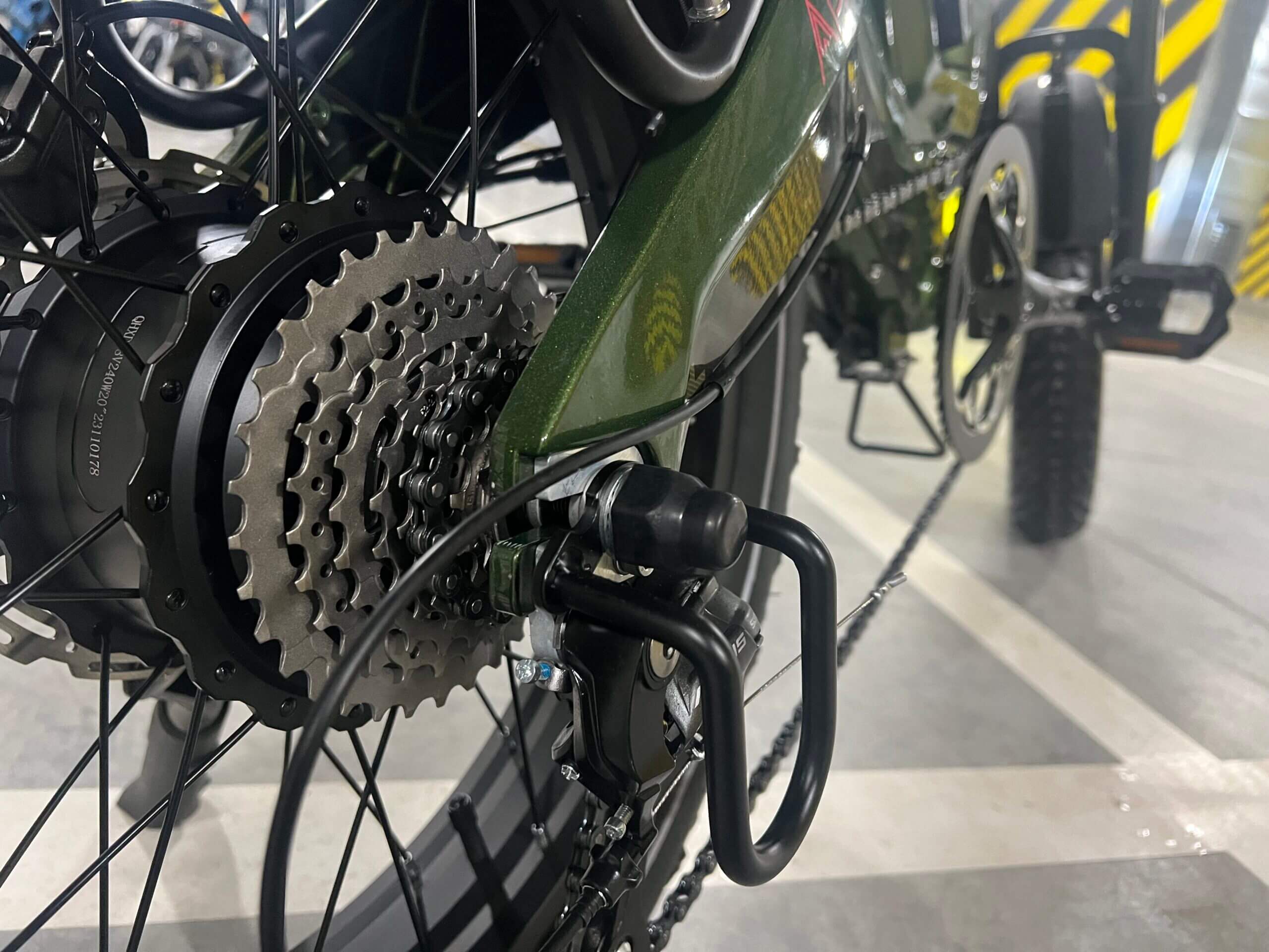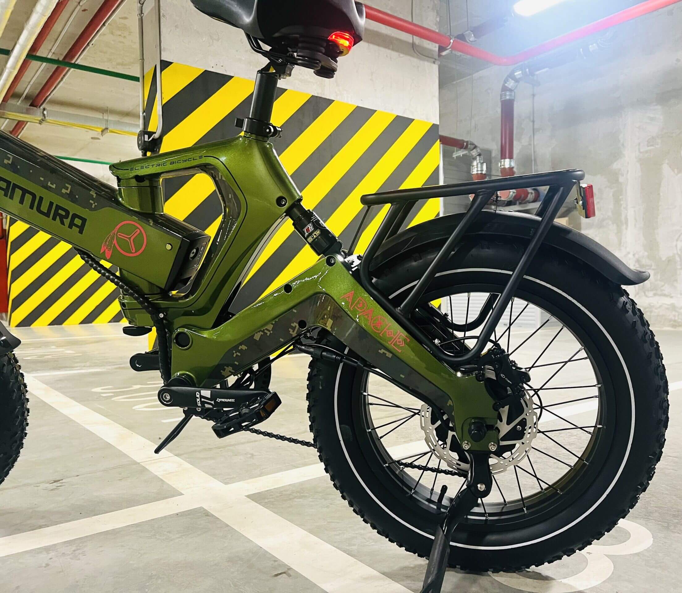 Apache представляет собой фетбайк с качественной рамой из алюминиевого сплава и прочными широкими колесами, обеспечивающими комфортное и безопасное передвижение по различным поверхностям. Съемный аккумулятор емкостью 20 Ампер-часов обеспечивает достаточный запас хода для длительных поездок и позволяет заряжать велосипед даже во время использования.