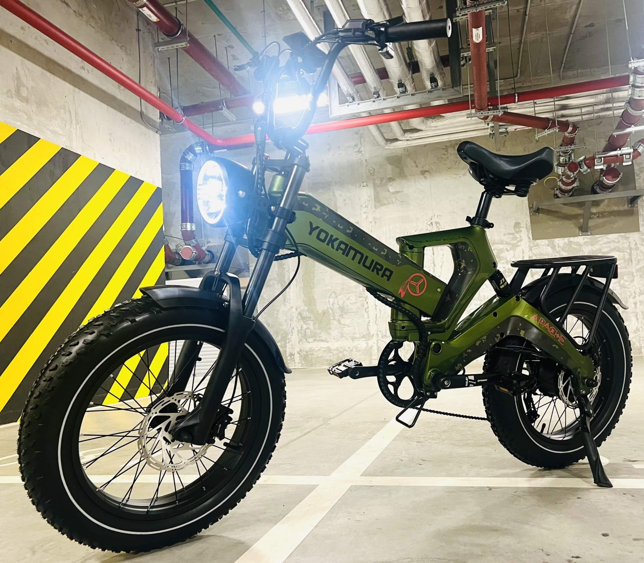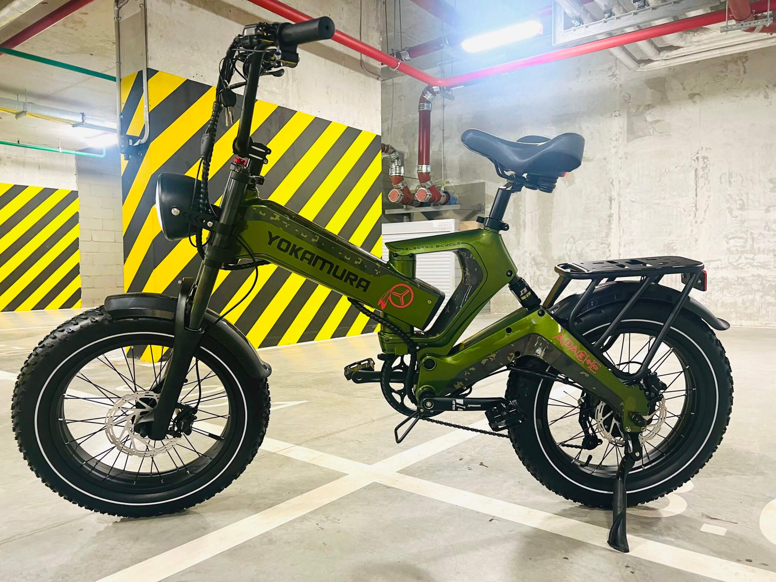 Yokamura Apache представляет собой инновационный электровелосипед, который сочетает в себе удобство, стиль и эффективность. Этот велосипед выделяется своими широкими колесами и складной конструкцией, что делает его идеальным для использования в городских условиях и легкого хранения.