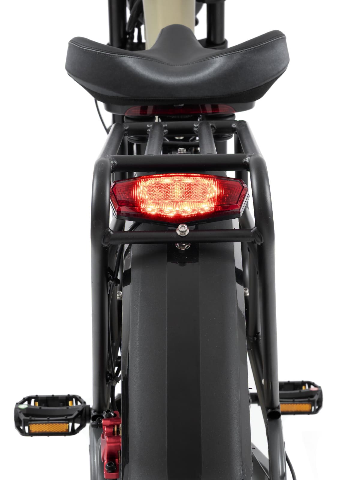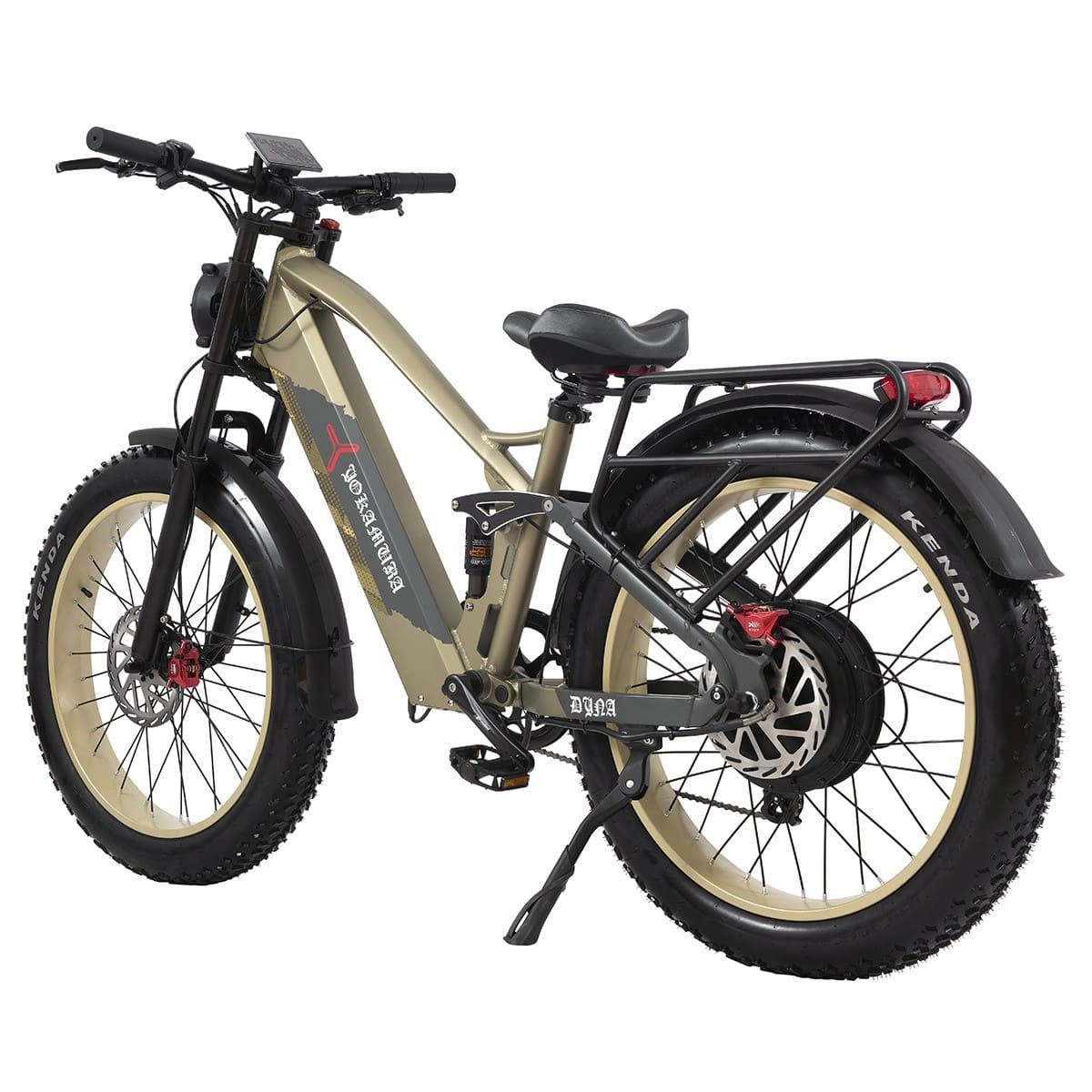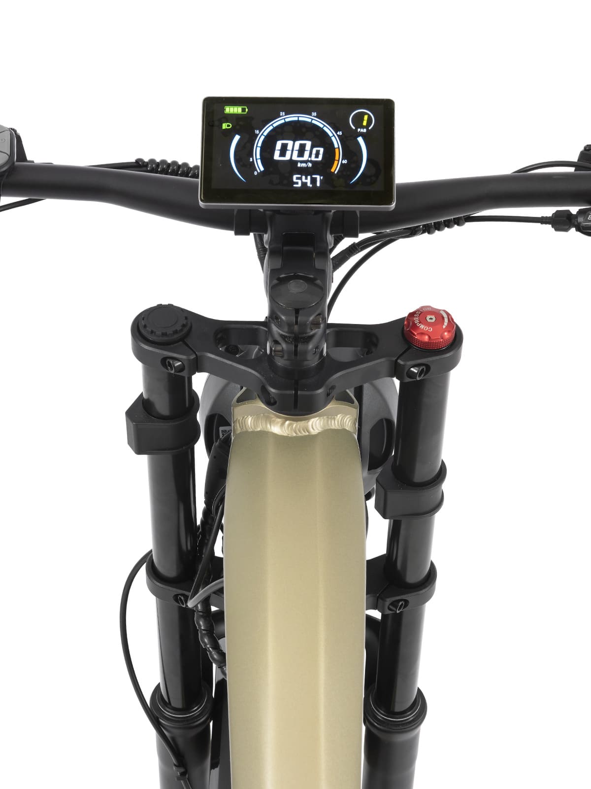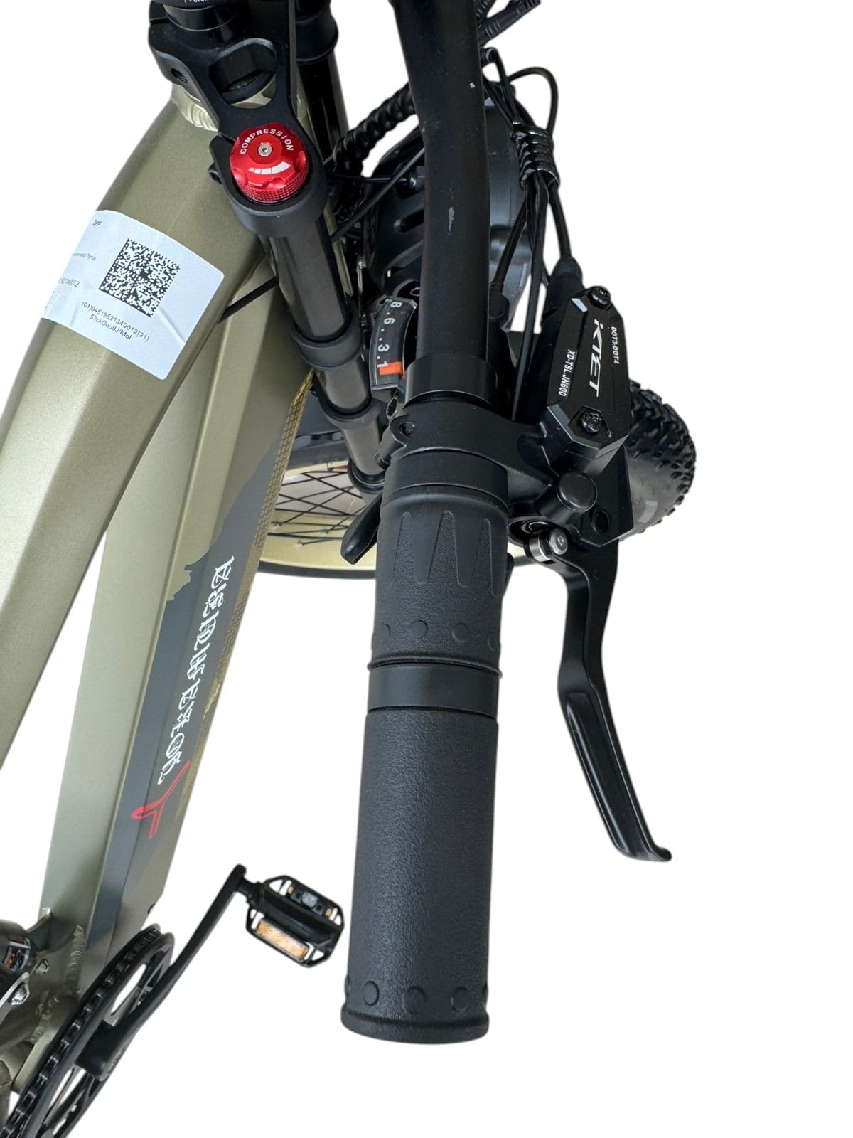 Конструкция велосипеда предусматривает комфортную и безопасную езду: гидравлическая двухпоршневая тормозная система Ktet гарантирует точное и эффективное торможение, а гидравлический передний амортизатор обеспечивает плавность хода даже на неровных поверхностях. Диаметр колес 26 дюймов сочетает маневренность и устойчивость, что делает электровелосипед удобным как в городе, так и на пересеченной местности.