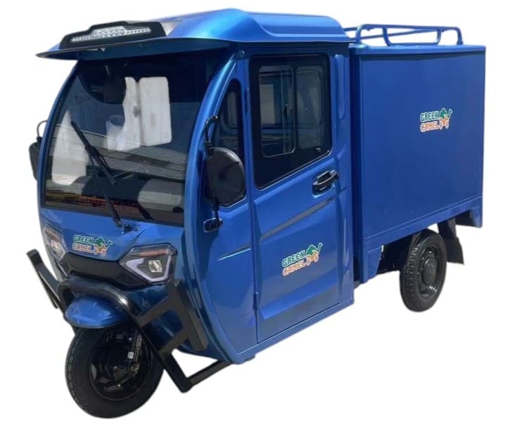 Трицикл грузовой GreenCamel Тендер E1500 — это компактный и экологичный электрогрузовик, созданный для перевозки грузов в городских условиях. Модель оснащена электродвигателем мощностью 1200 Вт, что обеспечивает уверенное движение с максимальной скоростью до 25 км/ч. Закрытый кузов и кабина защищают грузы от внешних воздействий, а пробег на одной зарядке с батареей 52Ah достигает 75 км, что делает его идеальным выбором для работы на короткие и средние расстояния.