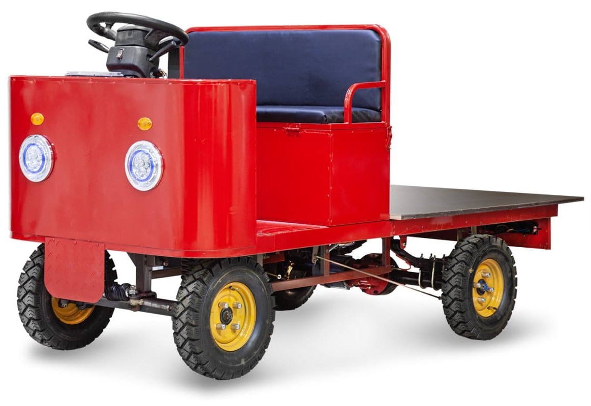 Габаритные размеры платформы составляют 2200×1000×1580 мм, что обеспечивает просторную и устойчивую поверхность для размещения паллет, коробок и других видов груза. Колёса диаметром 8 дюймов с шинами 4.00-8, обеспечивая хорошее сцепление и мягкость хода даже на неровных покрытиях.