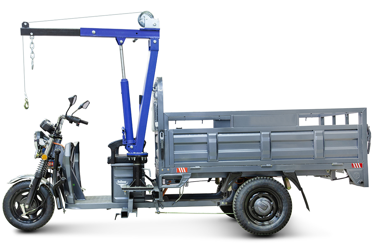 Грузовой электротрицикл Rutrike D4 NEXT 1800 60V1200W с краном для поднятия грузов - это идеальное решение для перевозки тяжелых грузов. Его грузоподъемность составляет впечатляющие 1200 кг, что делает его незаменимым помощником в логистике и транспорте. Уникальной особенностью данного трицикла является лебёдочный кран с грузоподъёмностью до 250 кг, который значительно упрощает процесс загрузки и разгрузки.