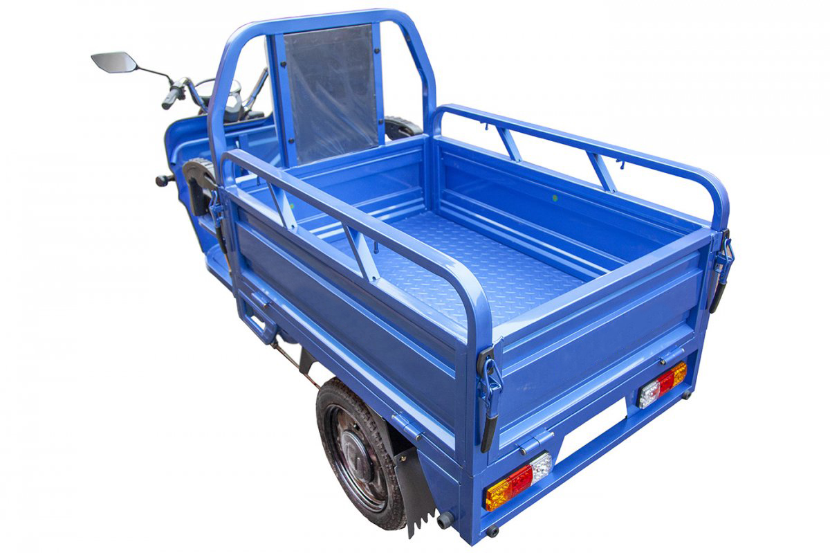 Трицикл оснащен кузовом с подъемной конструкцией на газовых амортизаторах. Электрический скутер-трицикл имеет вместительный кузов размерами 1200 x 850 x 300 мм (Д х Ш х В).