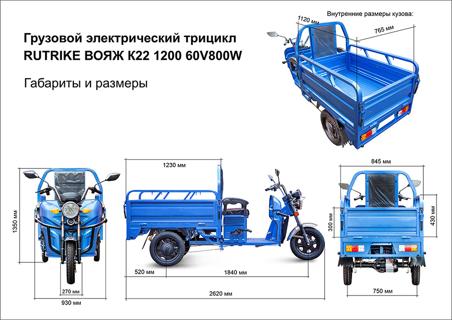 Обратите внимание, что электрический трицикл не укомплектован АКБ! Вы можете выбрать себе подходящий комплект тяговых аккумуляторных батарей из ассортимента продукции Rutrike.