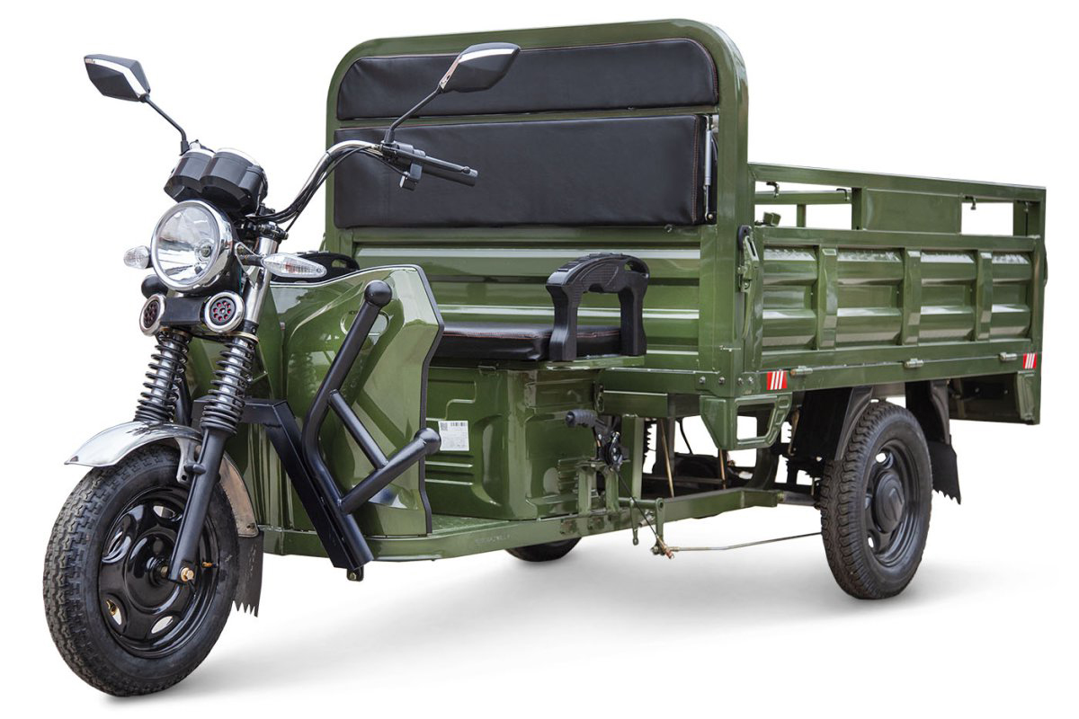 Вместительный кузов имеет размеры 1800 x 1250 x 475 мм (Д х Ш х В) и оснащен откидными бортами, что делает его идеальным для использования на стройке и в сельском хозяйстве. Электротрицикл демонстрирует высокую эффективность при выполнении погрузочно-разгрузочных работ.
