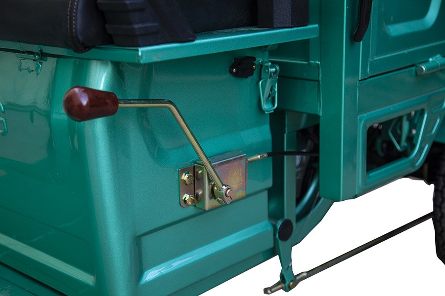 Передние и задние колеса имеют радиус 12 дюймов и комплектуются покрышками с развитыми грунтозацепами. Это обеспечивает повышенную устойчивость и хорошую маневренность даже в загруженном состоянии. На трицикле установлена противоугонная сигнализация.